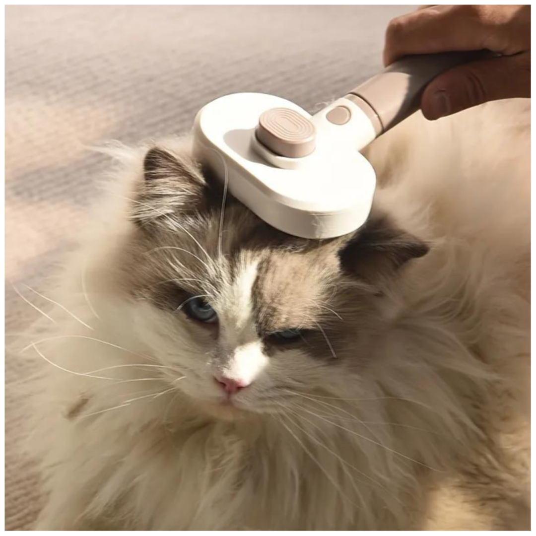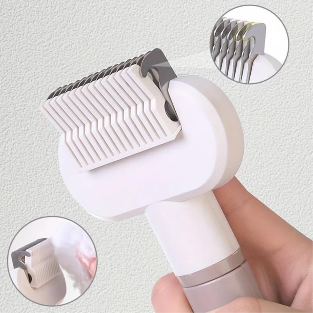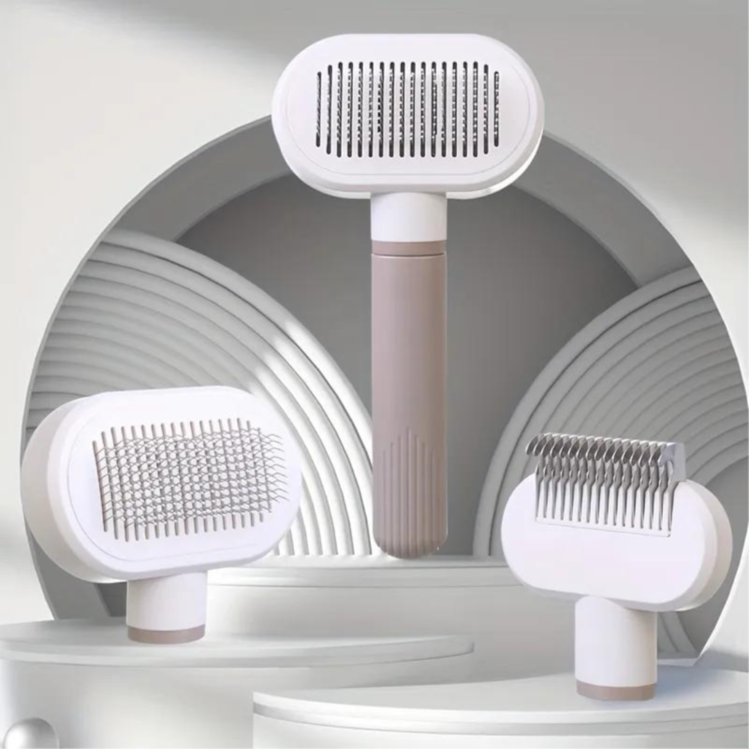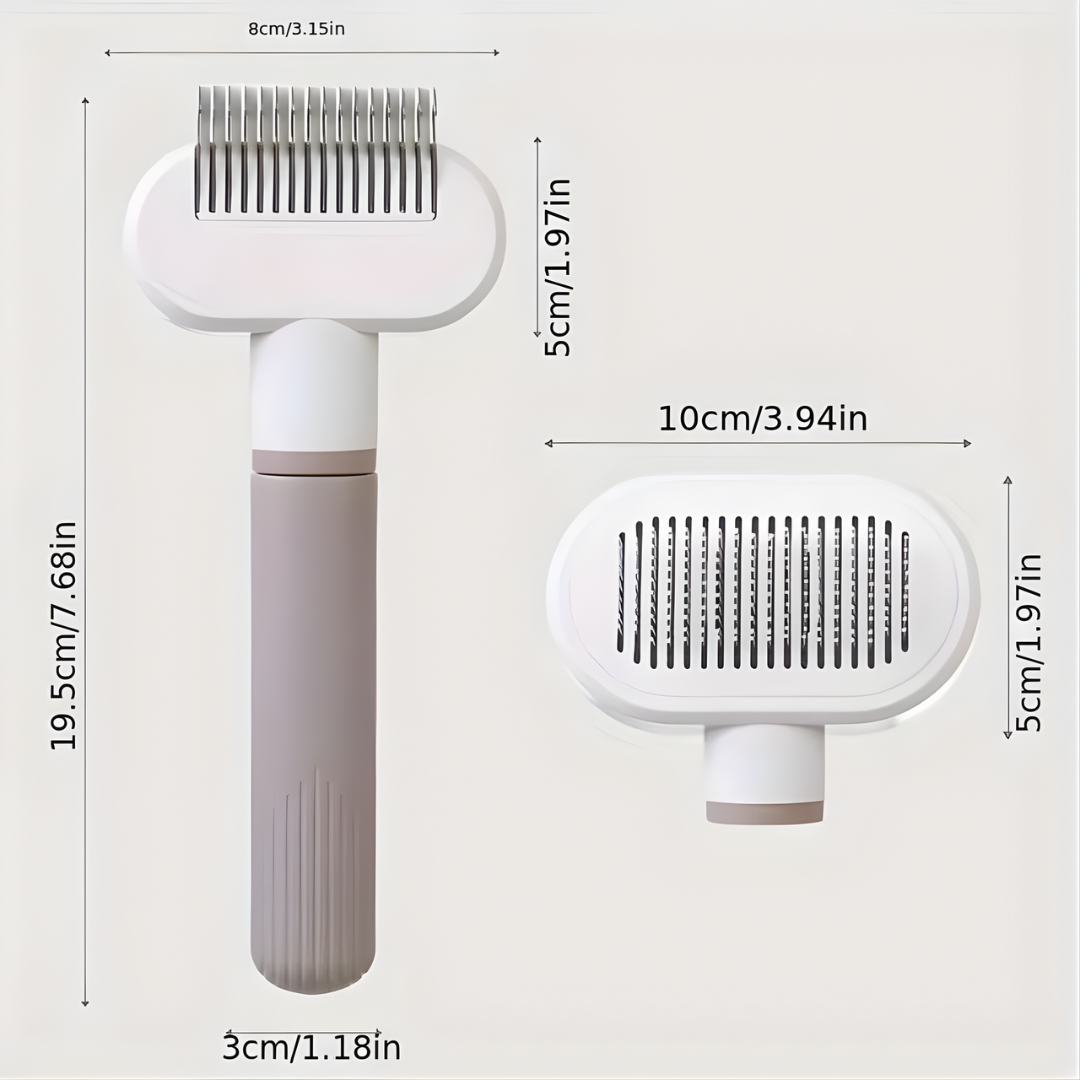 A versatile 2-in-1 pet grooming tool featuring interchangeable brush heads and an ergonomic handle in an elegant white and beige color scheme. This multi-functional comb combines detangling and deshedding capabilities in one convenient tool, designed specifically for effective pet hair removal.