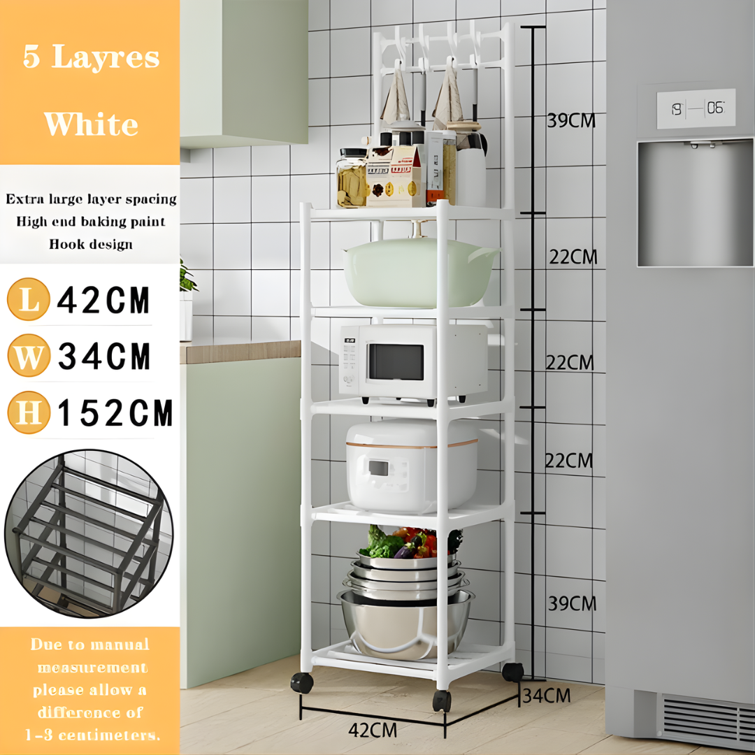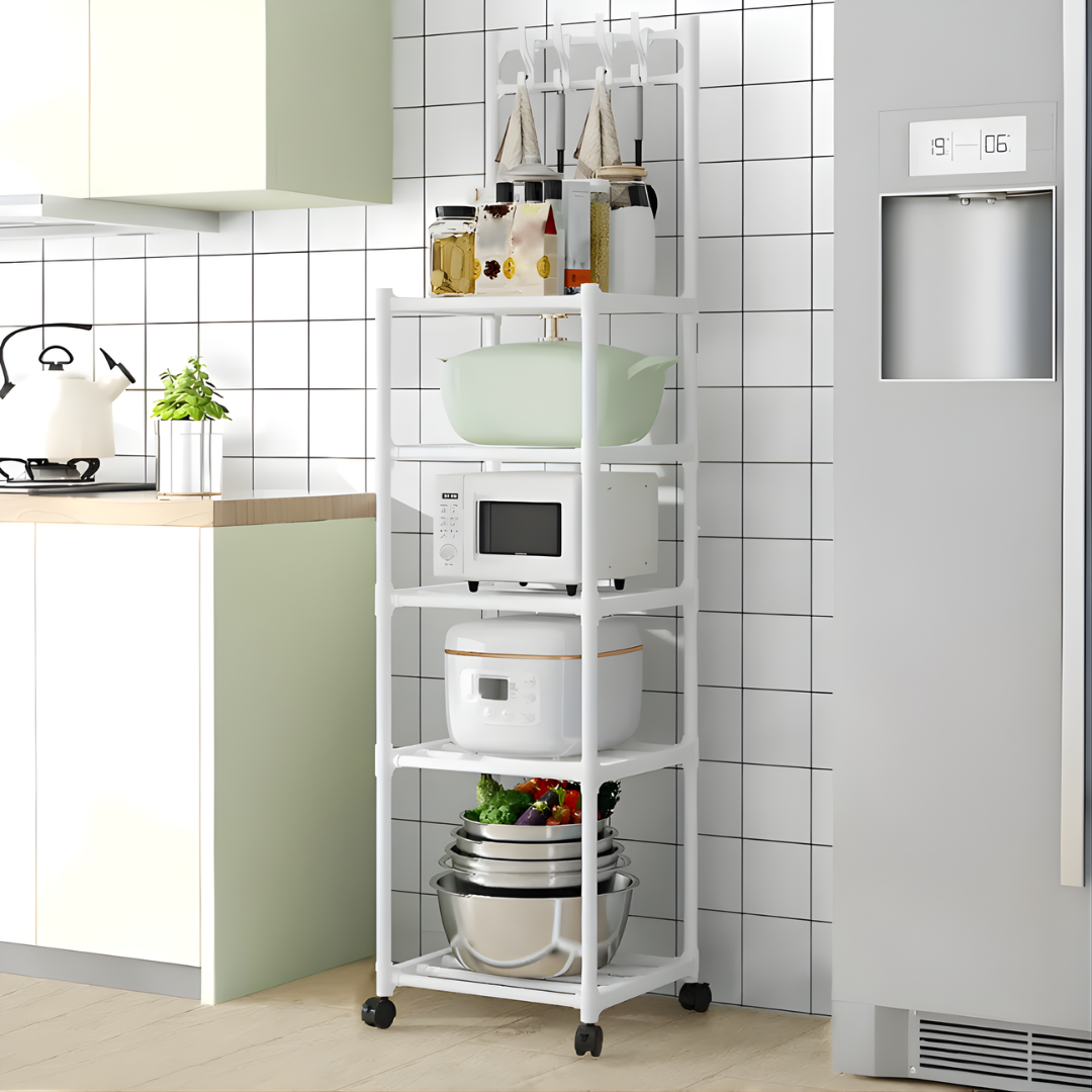رف متحرك متعدد الأغراض بأربع طبقات للمطبخ المنزلي، رف تخزين معدني متعدد الأغراض مزود بعجلات