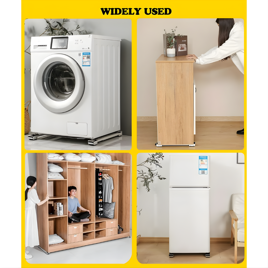 【Direct Use】No complicated installation steps required or tools. Simply place 2 brackets under the corners of refrigerators, washing machines, dishwashers, dryers or other household appliances and furniture, Then gently step on the brake to fix the bracket.