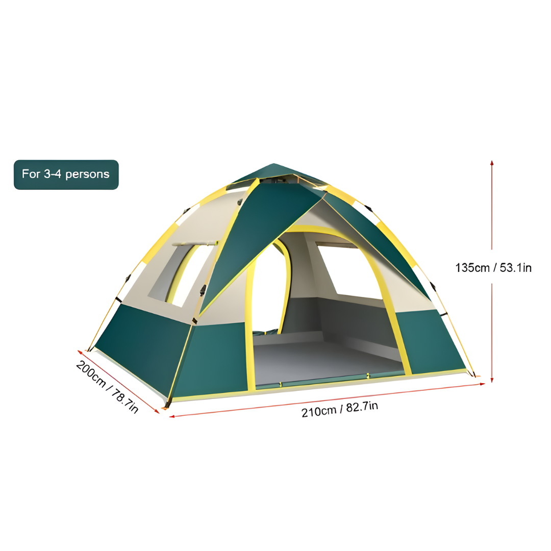 The Automatic Outdoor Camping Tent offers convenient 2x2m shelter with an innovative pop-up design for effortless setup. Featuring a sturdy frame and durable green and yellow exterior with mesh windows, this versatile tent provides reliable protection for various outdoor activities. The automatic deployment mechanism eliminates complicated assembly, making it perfect for camping trips, picnics, beach outings, and backyard adventures.