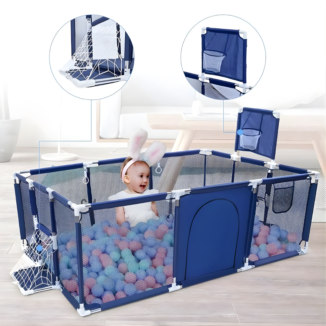 【New style with 4 pull loops】 This versatile playpen is the good companion for your child’s growth! Designed to encourage crawling, walking, and exploration, it includes four adjustable pull loops and a detachable basketball hoop for motor skill development. Transform it into a safe, engaging amusement park where curiosity and physical activity thrive.