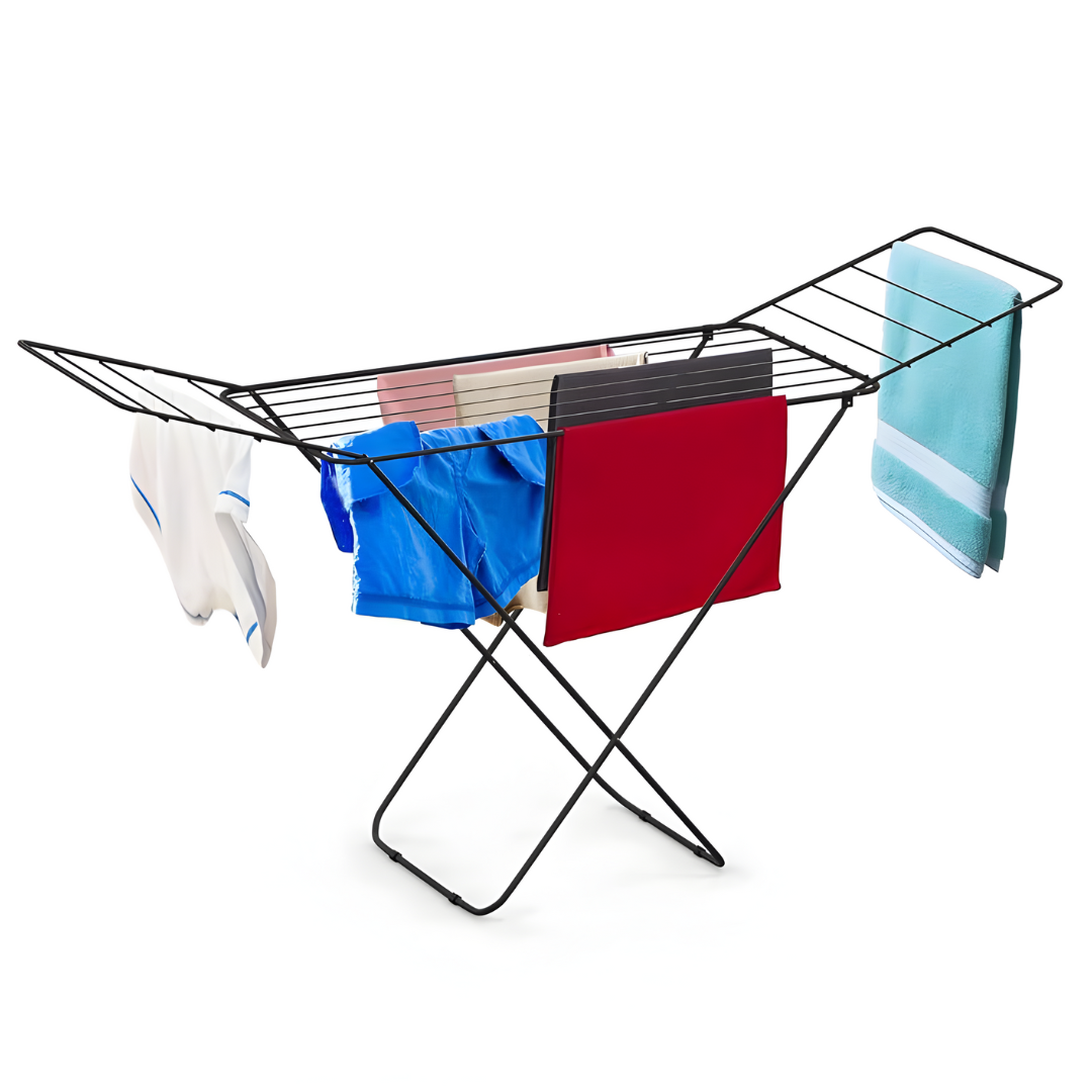 The X Leg Cloth Drying Stand is a practical laundry solution featuring a sturdy steel construction with weatherproof coating. Its innovative X-shaped design and five-leg base system provide exceptional stability while maintaining lightweight portability for convenient use.