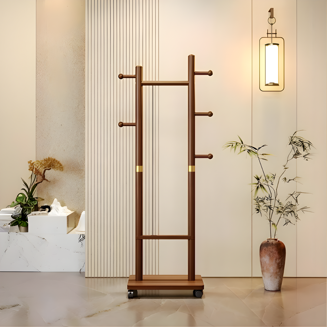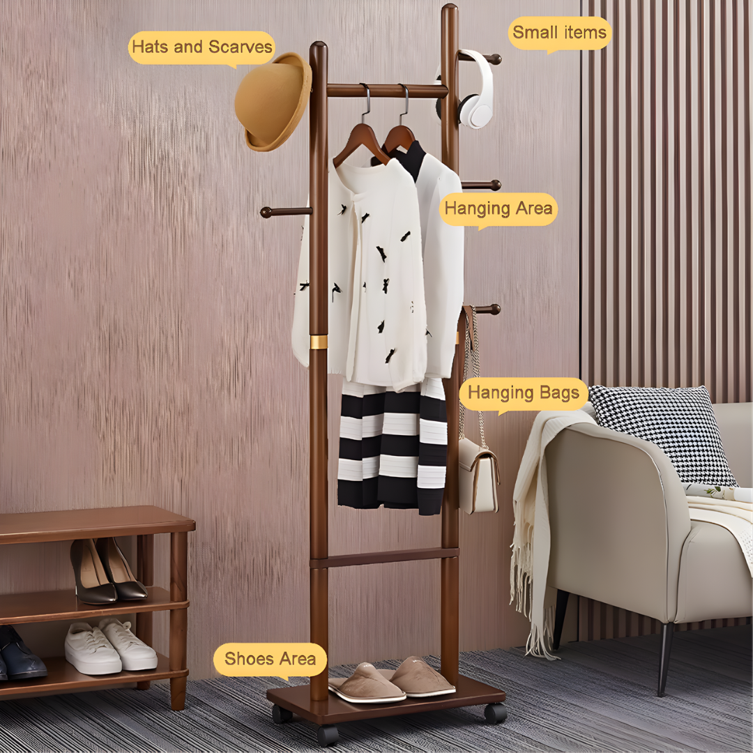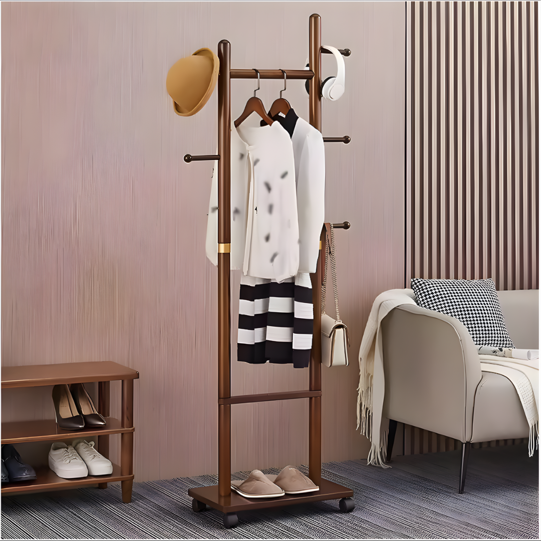 رف ملابس خشبي بعجلات