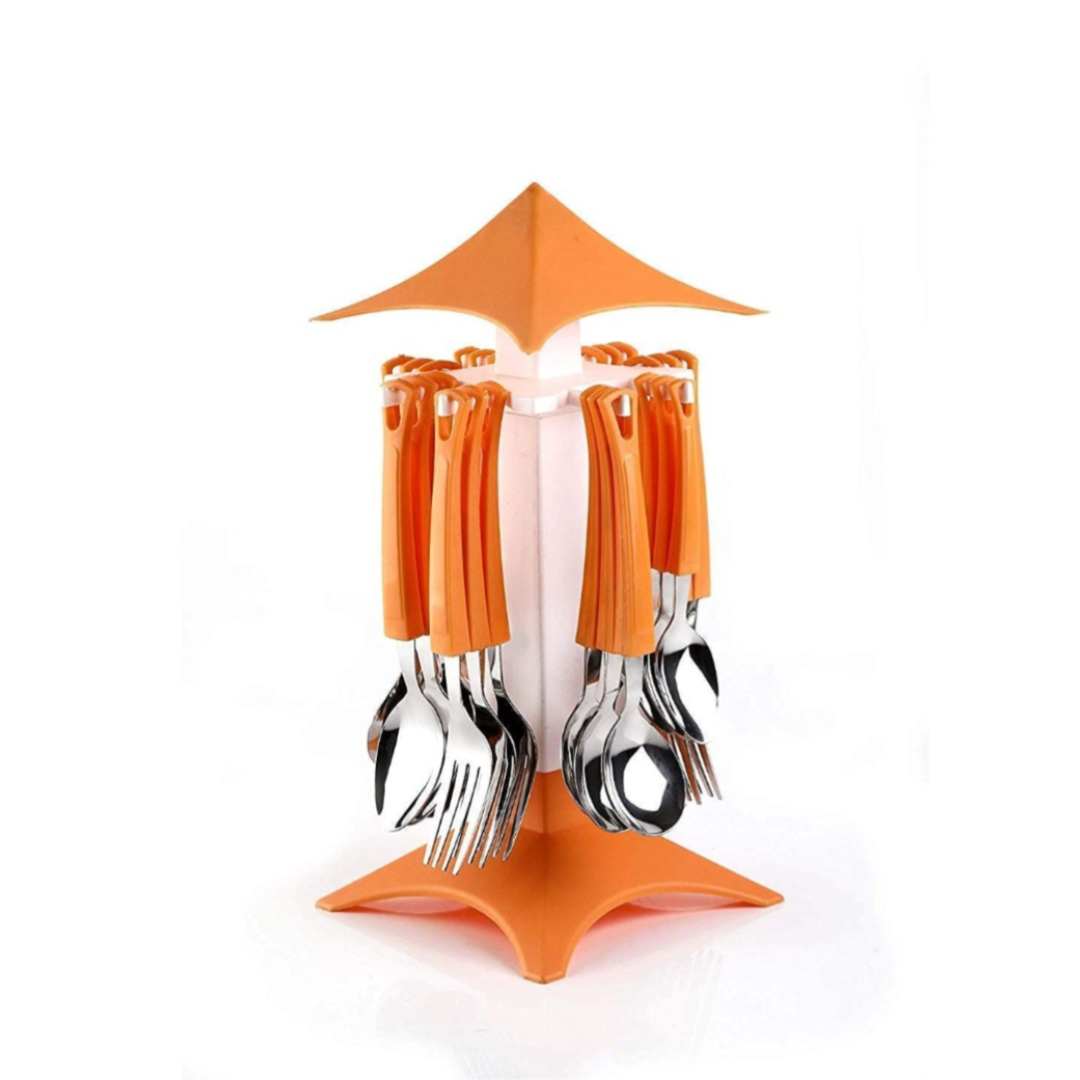 مجموعة أدوات المائدة مصنوعة من الفولاذ المقاوم للصدأ آمنة للاستخدام في غسالة الأطباق ومقابض مقاومة للحرارة مع قبضة مريحة. حامل...
