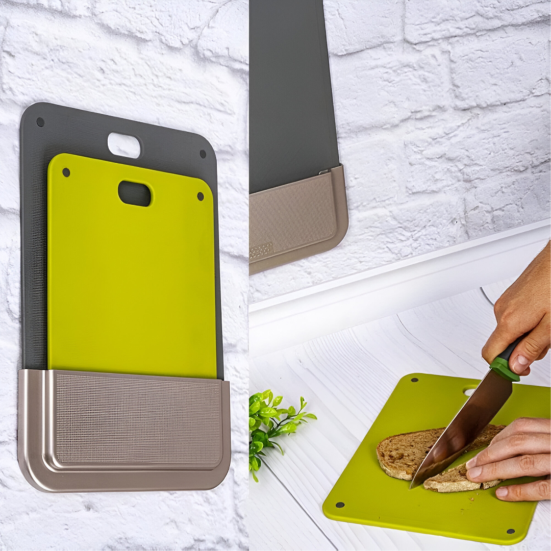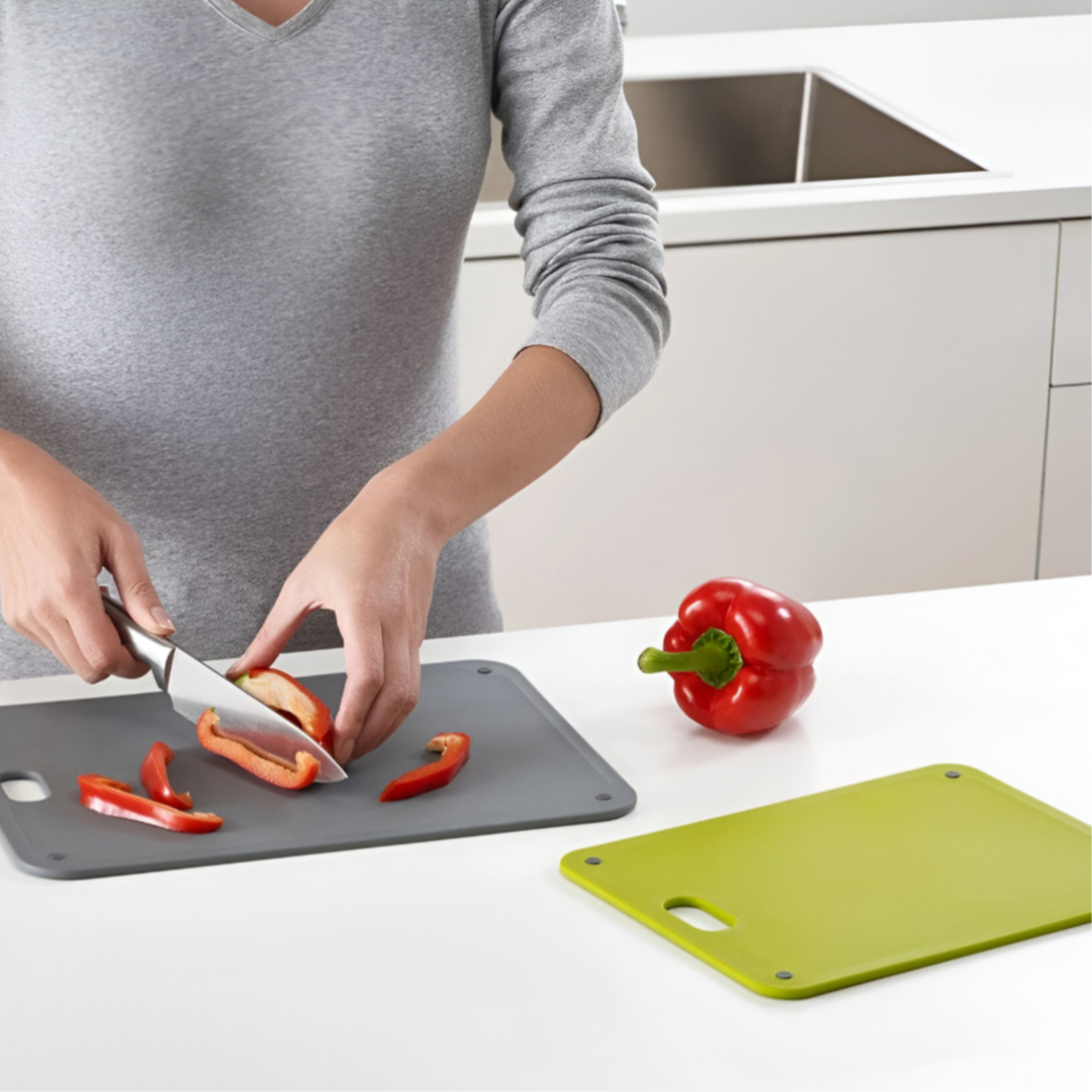 - ألواح تقطيع ذات وجهين مع أقدام غير قابلة للانزلاق وأسطح تقطيع محكمة الغلق مناسبة للسكاكين