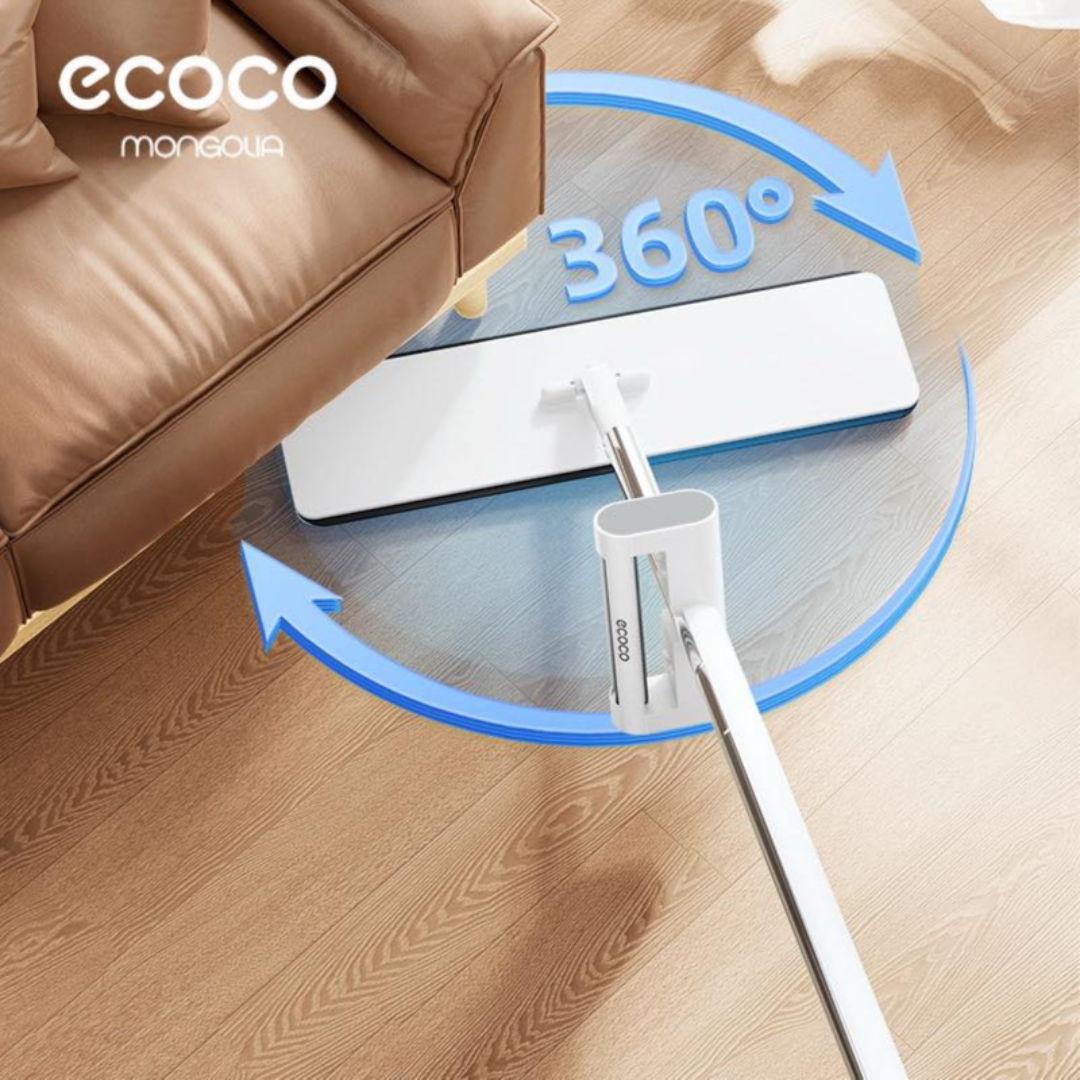 The Ecoco flat mop is ideal for various floor types including hardwood, tile, and laminate. Its ergonomic design reduces strain during cleaning tasks, while the rotating head allows for efficient coverage of larger areas with minimal effort. The mop's construction from multiple high-quality materials ensures durability and long-lasting performance. The white color gives it a clean, modern appearance that fits well in contemporary homes.