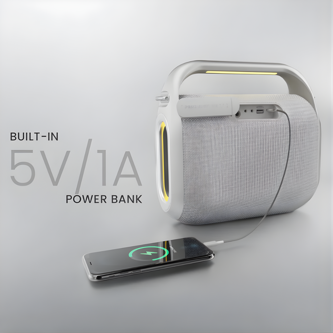 Uninterrupted Fun: Keep the party going with the built-in power bank, ensuring your devices stay charged while you enjoy rich, immersive sound.