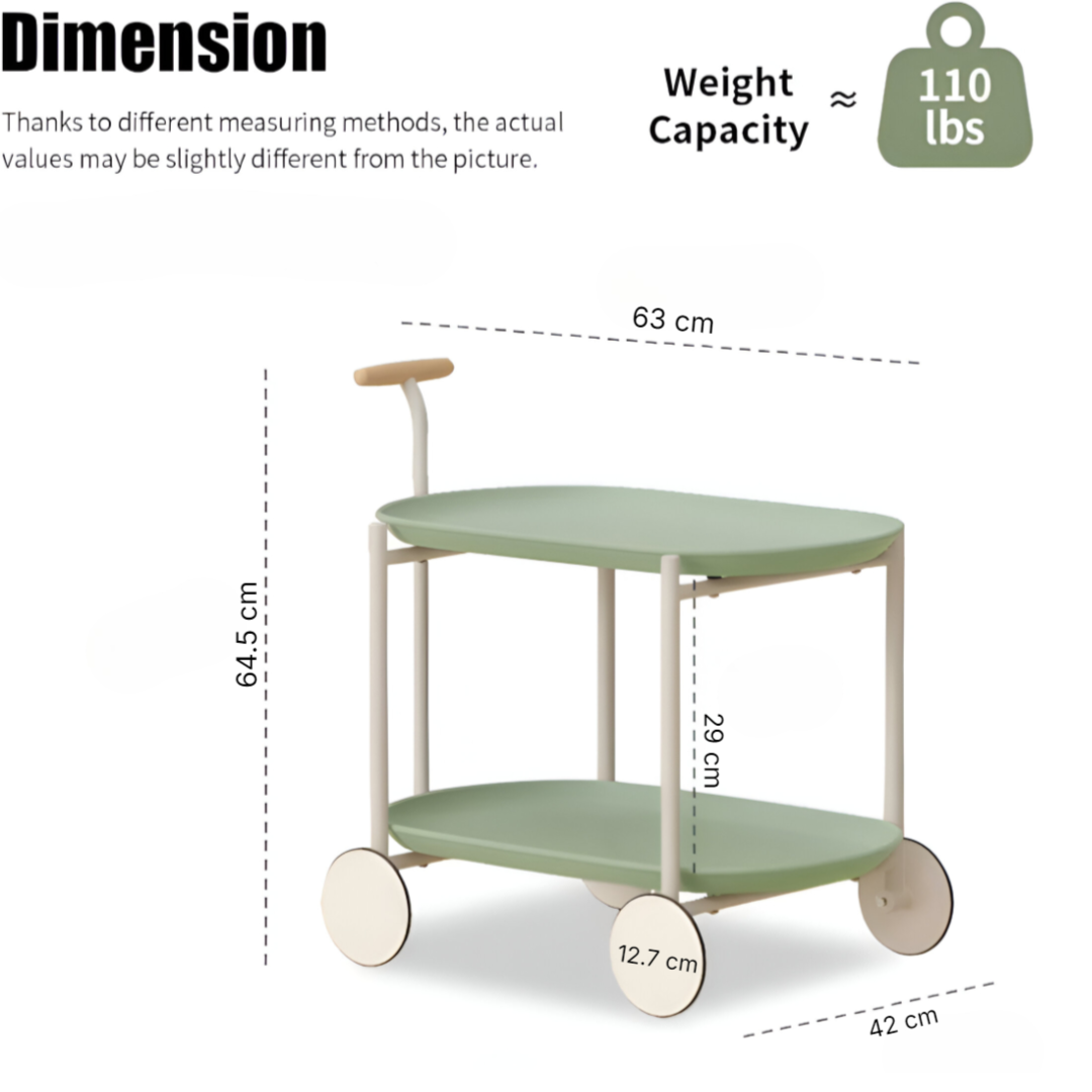 Flexible Silent Wheels: Easy to operate and locks into place for stability. Flexible silent wheel with brake built in, pushes and moves. Smooth and snag-free wheels, high quality materials for ease of movement, super load bearing capacity make the whole cart more suitable