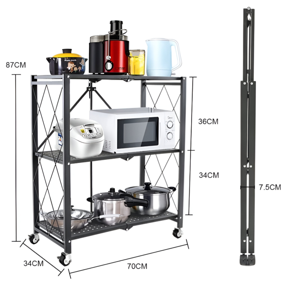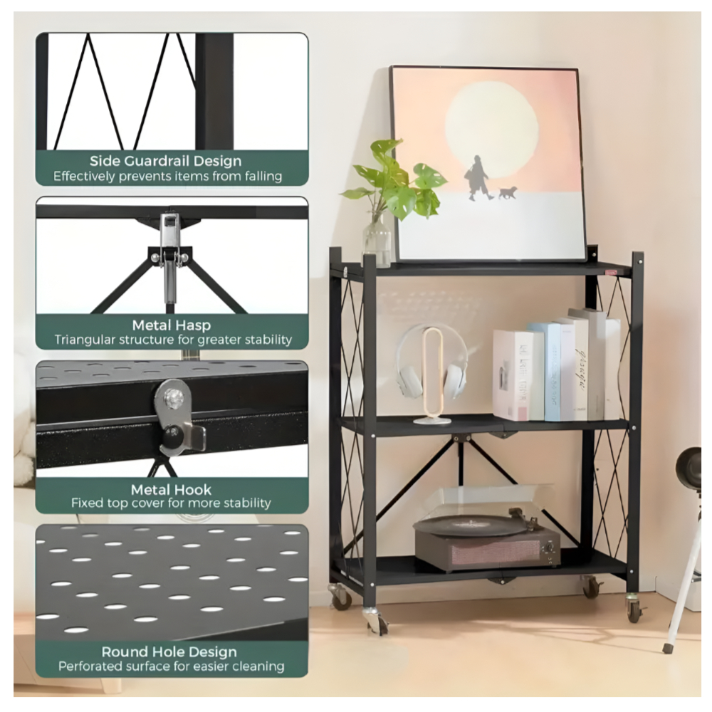 عربات معدنية منزلية متدحرجة، منظم موفر للمساحة، يُستخدم في غرفة المعيشة والحمام ورفوف المكتب، لون أسود