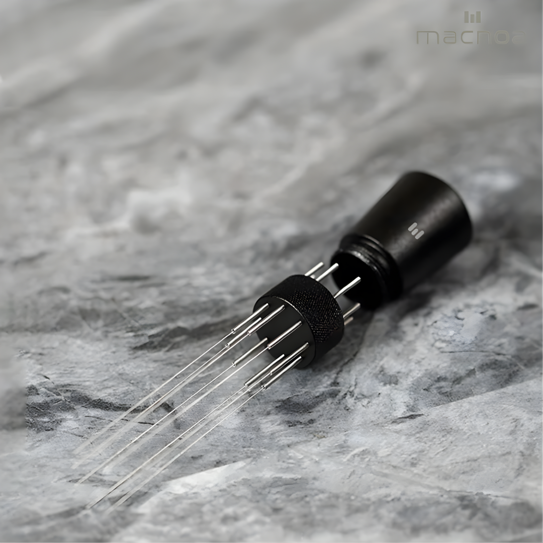 The MacStir WDT Tool, equipped with eight needles and a magnetic holder helpsevenly distribute coffee grounds, improving your espresso extraction...