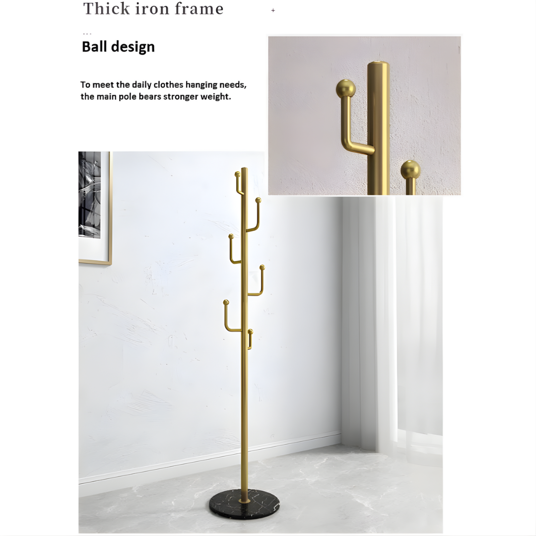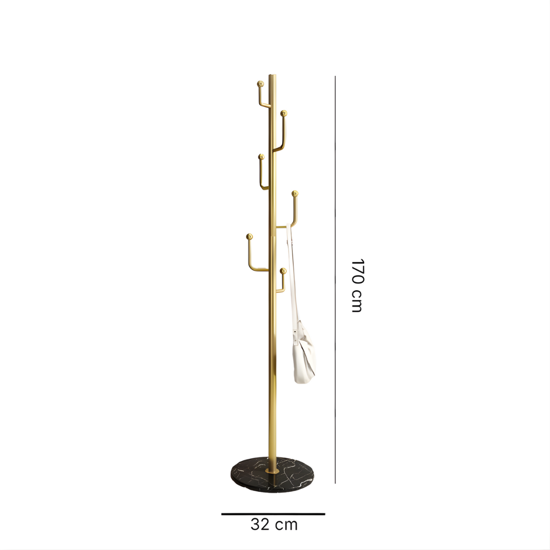حامل معاطف معدني بقاعدة دائرية من الرخام المستقر مع خطافات
