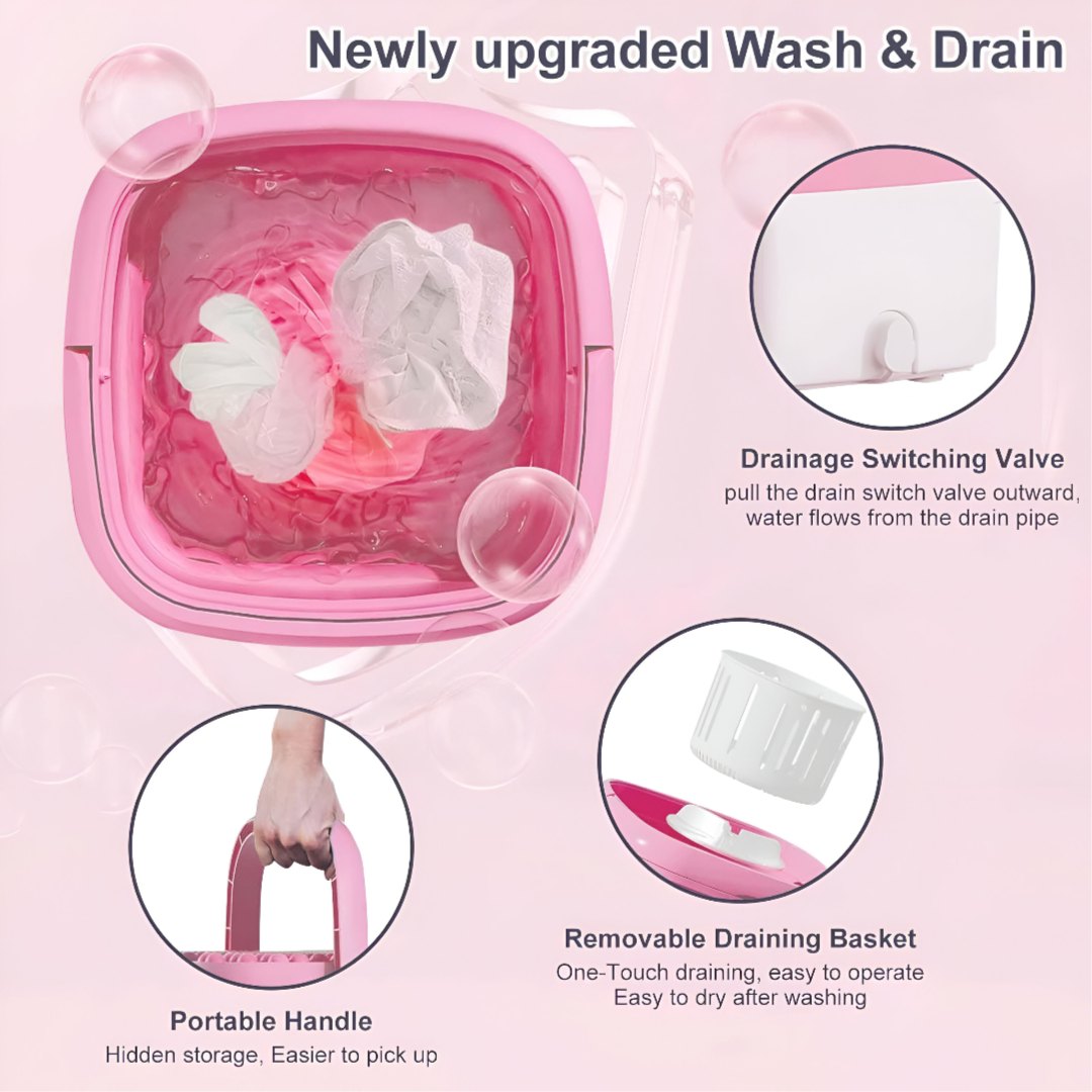 غسالة ملابس صغيرة الحجم قابلة للطي مصممة للأحمال الصغيرة، مثالية للسفر أو غرف النوم أو الشقق الصغيرة