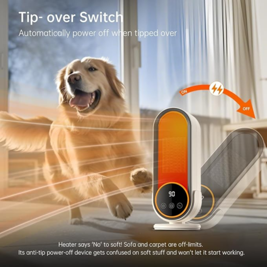 Rapid and Efficient Heating:Our Space Heater Indoor uses 1200W PTC ceramic technology to heat up rapidly within seconds. This powerful yet small space heater ensures efficient warmth for your home or office, making it the ideal electric heater indoor solution for both small and large rooms.