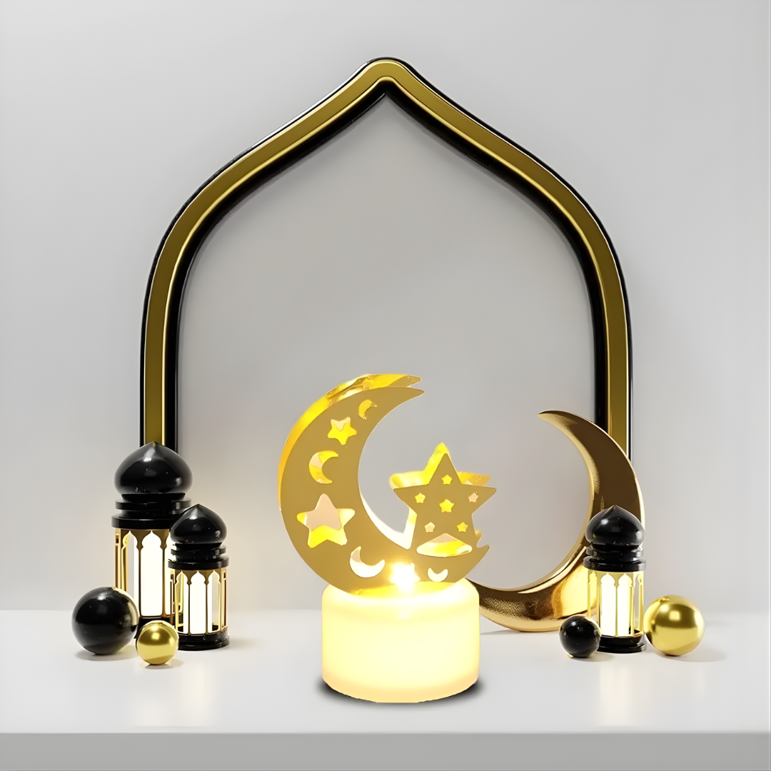 Eid elements: Ramadan Eid LED night light is a wonderful and unique piece with a unique design of castle, moon and other motifs about Eid, the unique cut-out design makes your house and party more festive.