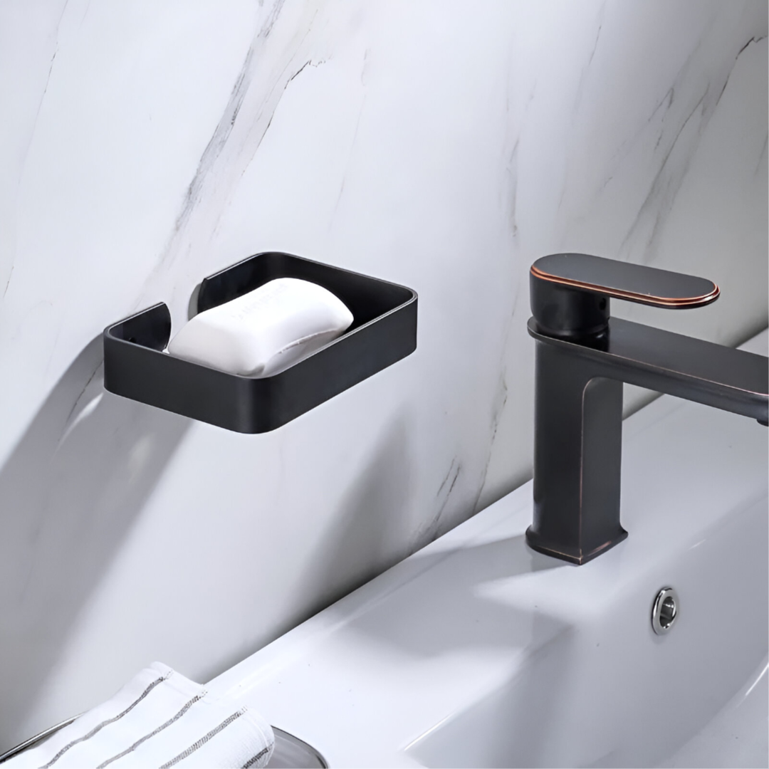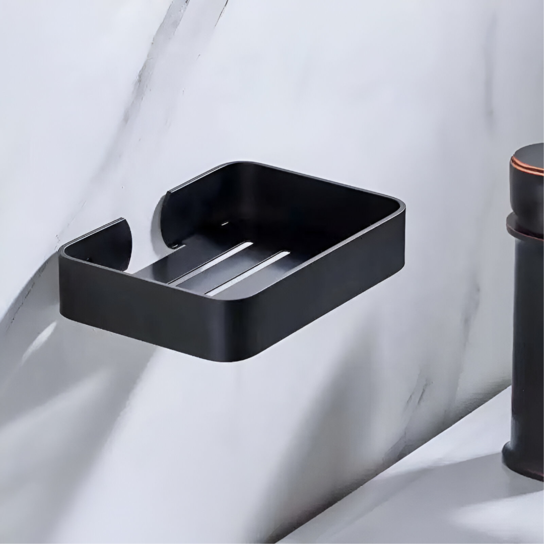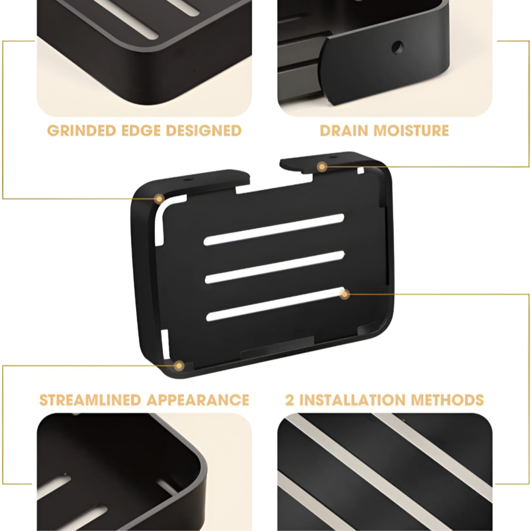 حامل صابون من الفولاذ المقاوم للصدأ مثبت على الحائط باللون الأسود