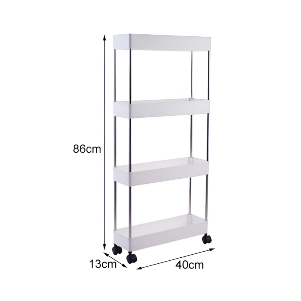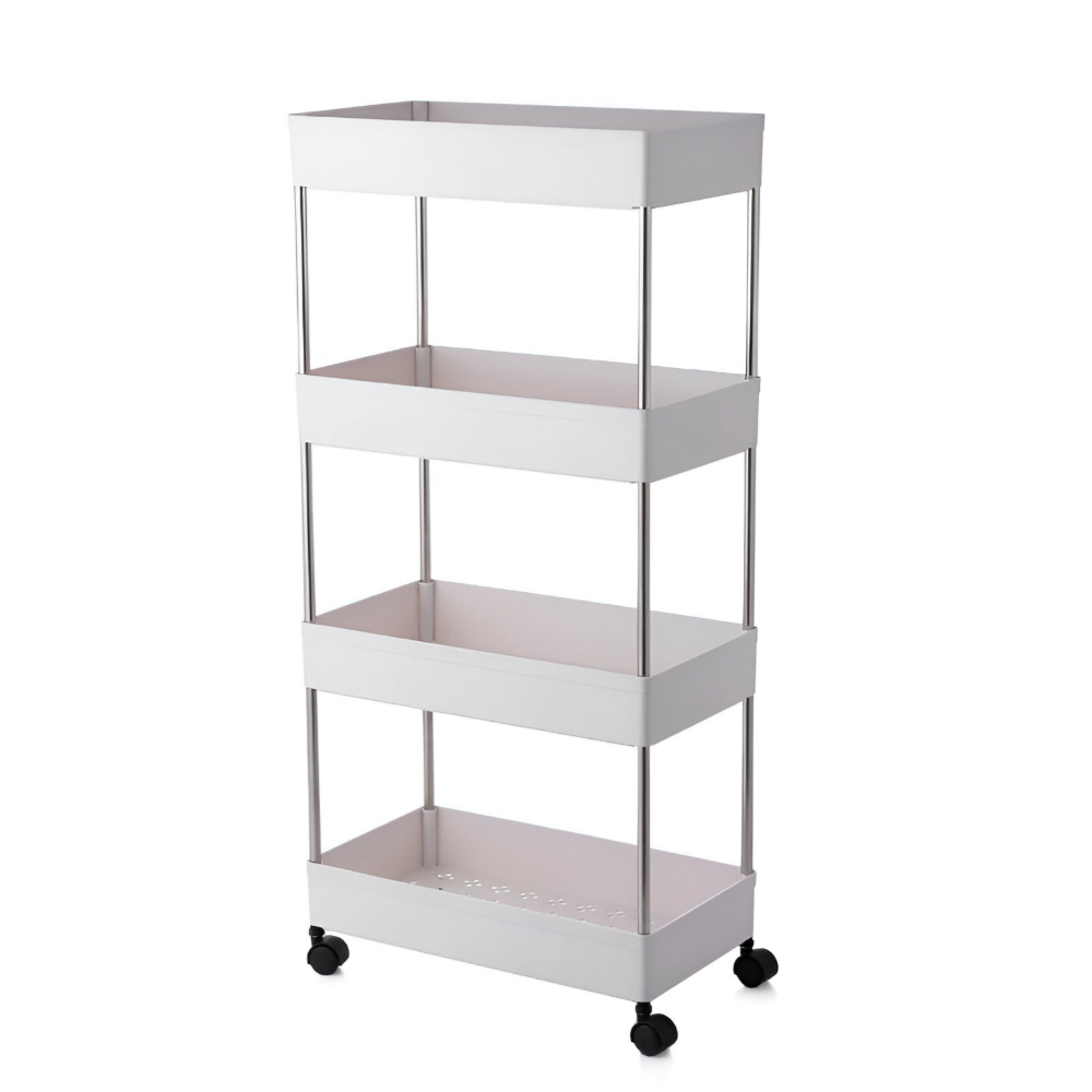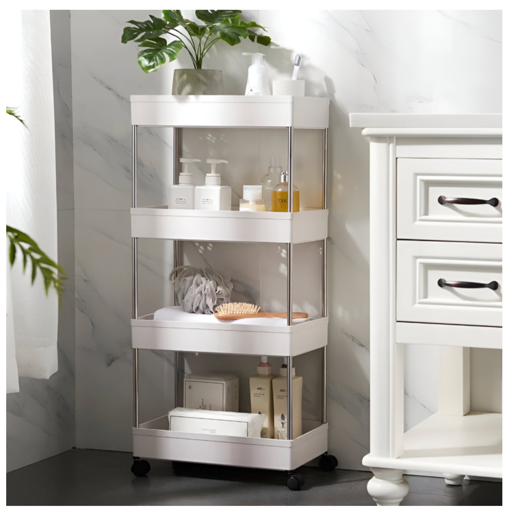 عربة تخزين بلاستيكية مكونة من 4 طبقات، عربة حمام ومطبخ، بلاستيكية استخدام متعدد الأغراض عربة المطبخ اللون:- أبيض