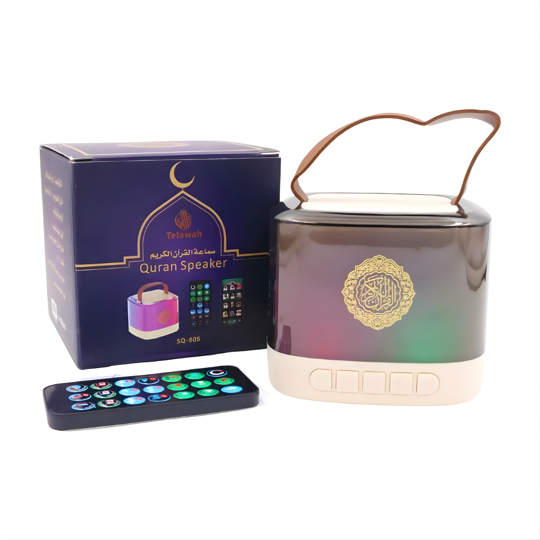 Mini Portable Quran Speaker Colorful LED Lights and Remote Control 16 Voices,18 Languages with Smart App - SQ-805 الكمية