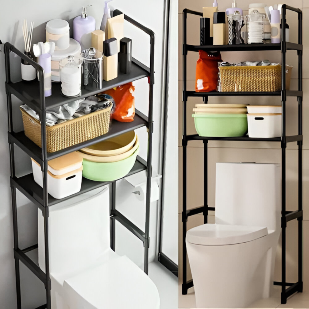 رف تخزين المرحاض بثلاث طبقات