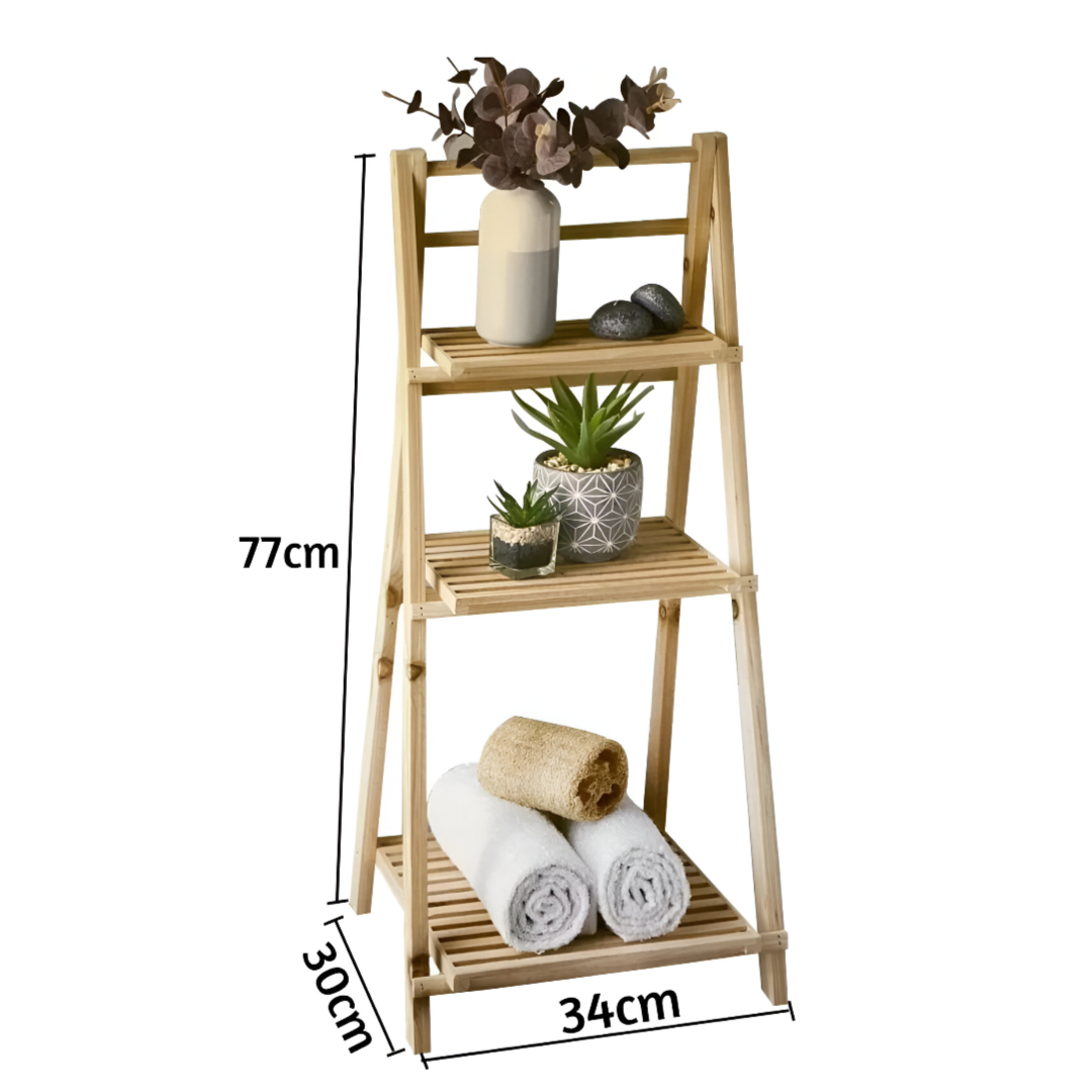 3 Tier Bathroom Ladder Shelf Folding Stand Storage Rack Wooden Free Standing 3 open shelves to keep your regular use...