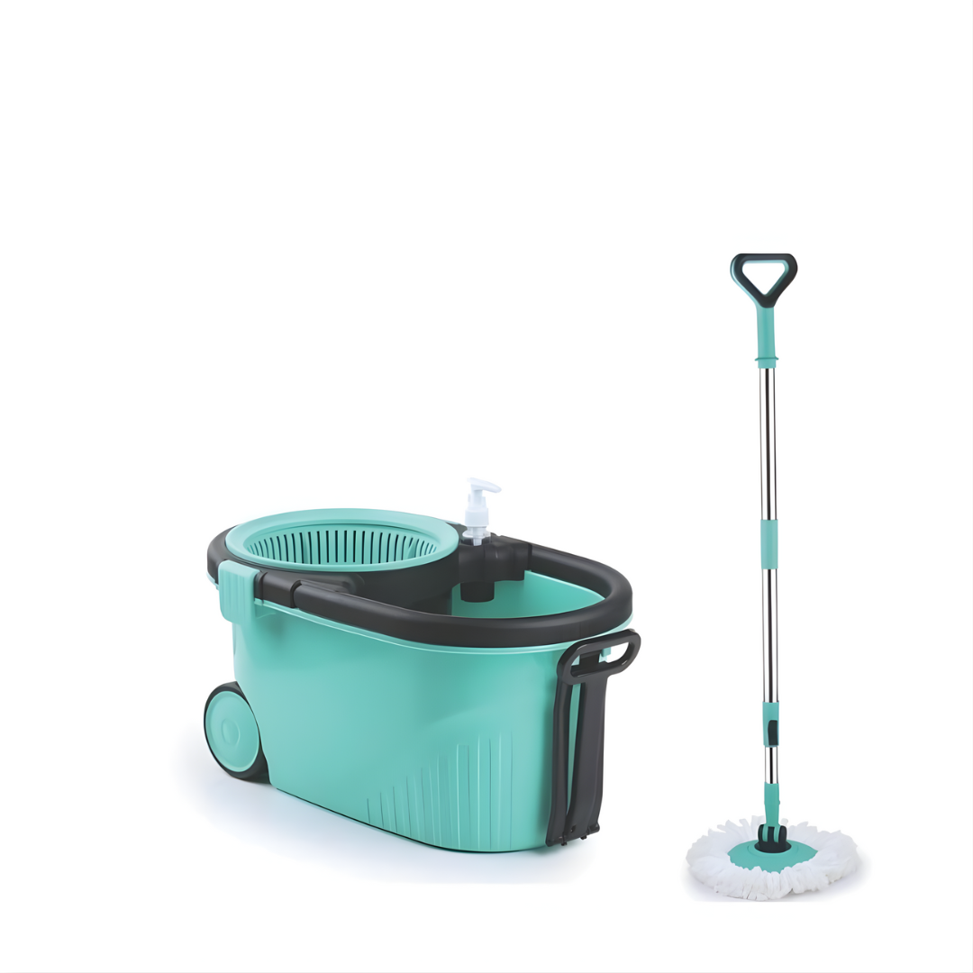 ممسحة متينة مع عصارة بلاستيكية لتنظيف الأرضيات: مزيج مثالي من الأناقة والراحة، تأتي هذه الأداة الشهيرة للتنظيف مع عصارة بلاستيكية وعجلات كبيرة ومقبض سحب لمساعدتك على تنظيف جميع أرجاء المنزل بسهولة. عجلات كبيرة ومقبض سحب: تأتي مع عجلات كبيرة ومقبض سحب لسهولة حمل الدلو في جميع أنحاء المنزل. يجعل تنظيف المنزل سهلاً وبسيطًا.