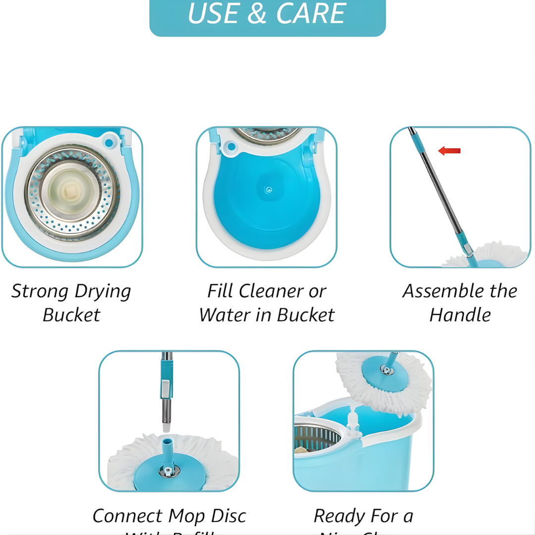 مجموعة ممسحة كاملة لتنظيف الأرضيات: تأتي مجموعة الممسحة مع دلو ممسحة بلاستيكي قابل للفصل بعجلات كبيرة، وقضيب ممسحة من الفولاذ المقاوم للصدأ، وعبوتين إضافيتين للممسحة من الألياف الدقيقة عالية الجودة، وموزع صابون سائل.