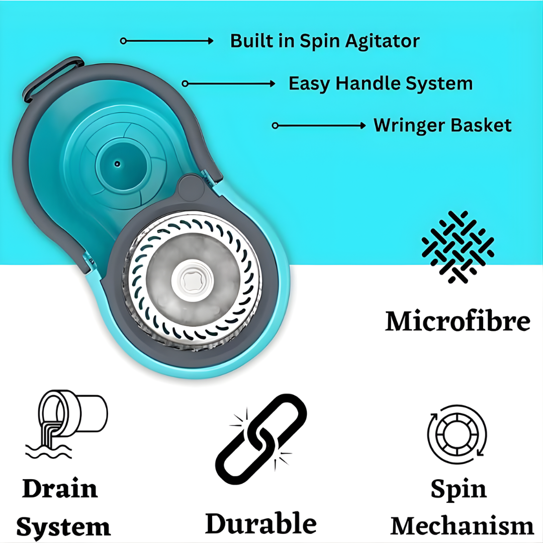 مقبض ممسحة دوار يدور 360 درجة: مقبض ممسحة خفيف الوزن وقابل للتعديل من الفولاذ المقاوم للصدأ، يصل بسهولة إلى أي زاوية من المنزل - مثل أسفل الطاولة أو السرير. قابس مخرج الماء: يُسهّل المخرج تصريف المياه المتسخة من الدلو دون الحاجة إلى استخدام اليدين.