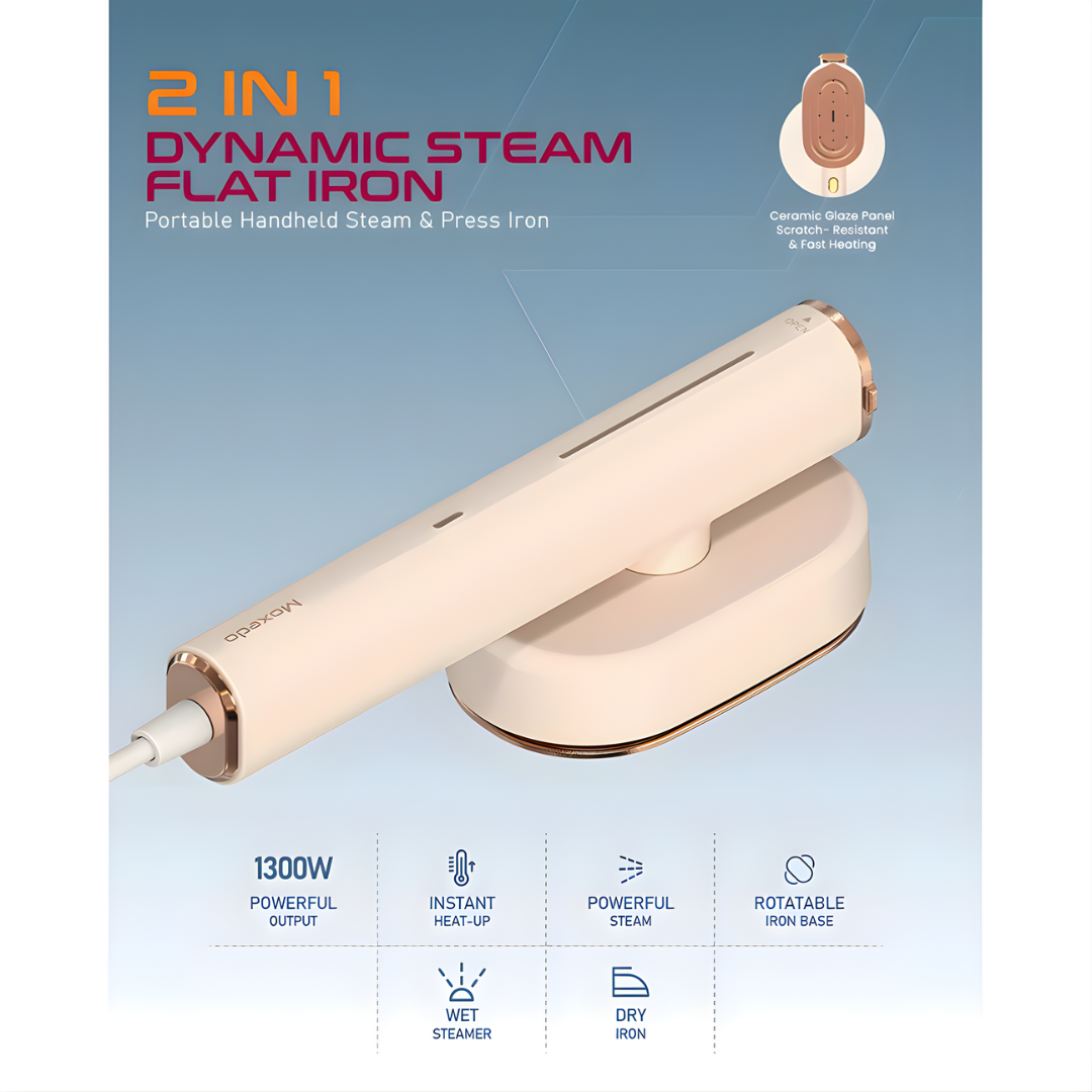 Professional Portable Steamer: This Moxedo dynamic steam flat iron boasts allowing quickly softening fibers and removing wrinkles. With its compact design and 80ml water tank, it's perfect for both home and travel use, providing quick ironing in just 3 minutes.