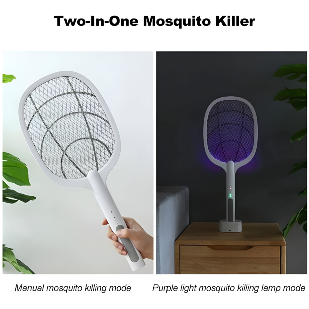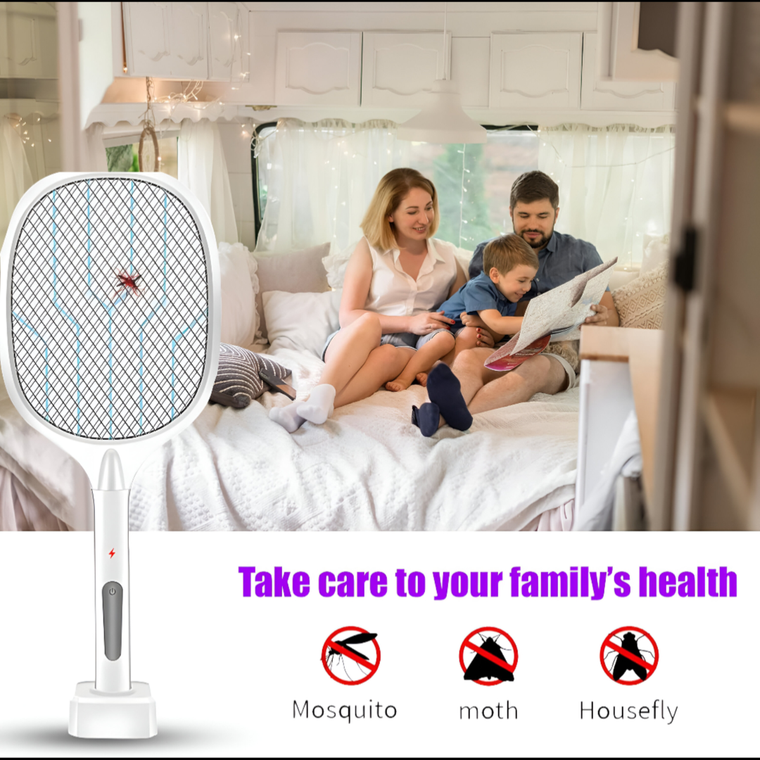 2-in-1 Functionality: Combines a high-power electric fly swatter with a built-in mosquito lamp, providing versatile insect control for various settings.