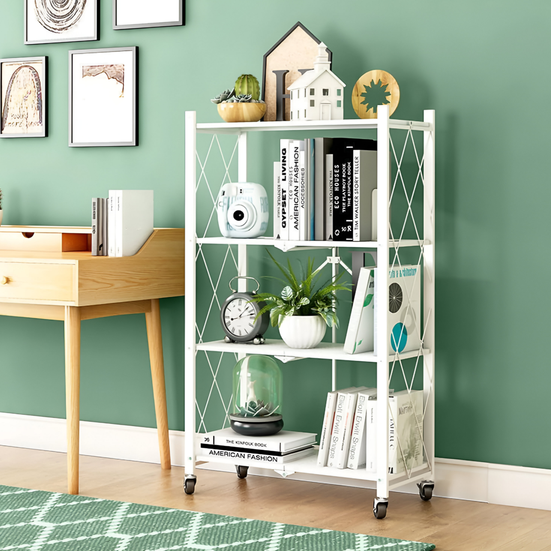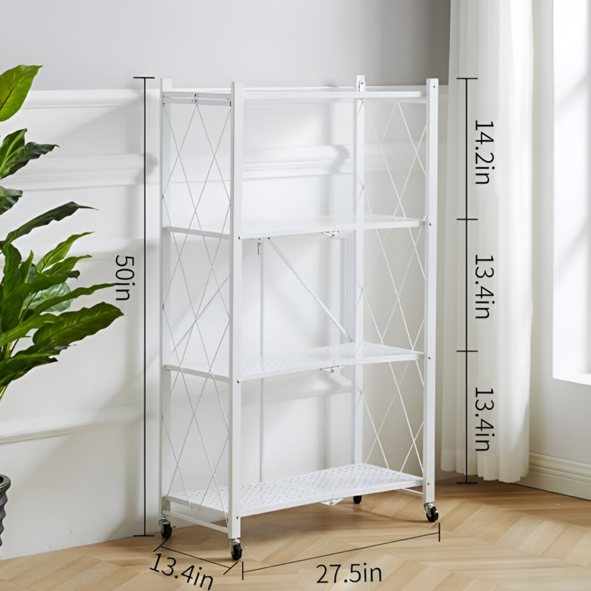 4 layer Foldable Kitchen Storage Rack- White