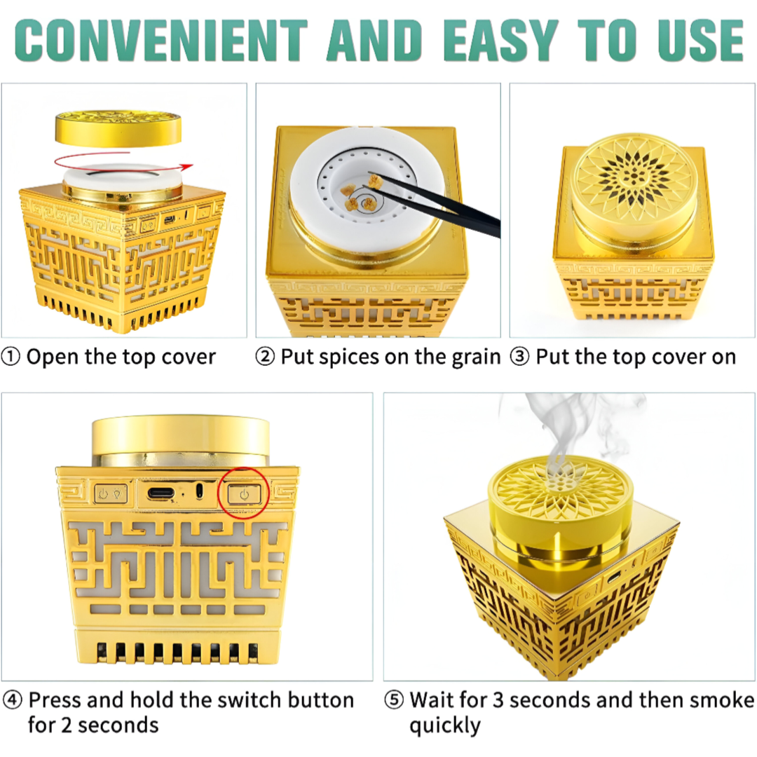 BAKHOOR BURNER: The USB Rechargeable Incense Burner from BoSidin is a simple-to-use device that blends in with any environment, whether at home or on the go. Its effective heating element produces a steady, fragrant scent release that promotes ambiance, mindfulness, and relaxation