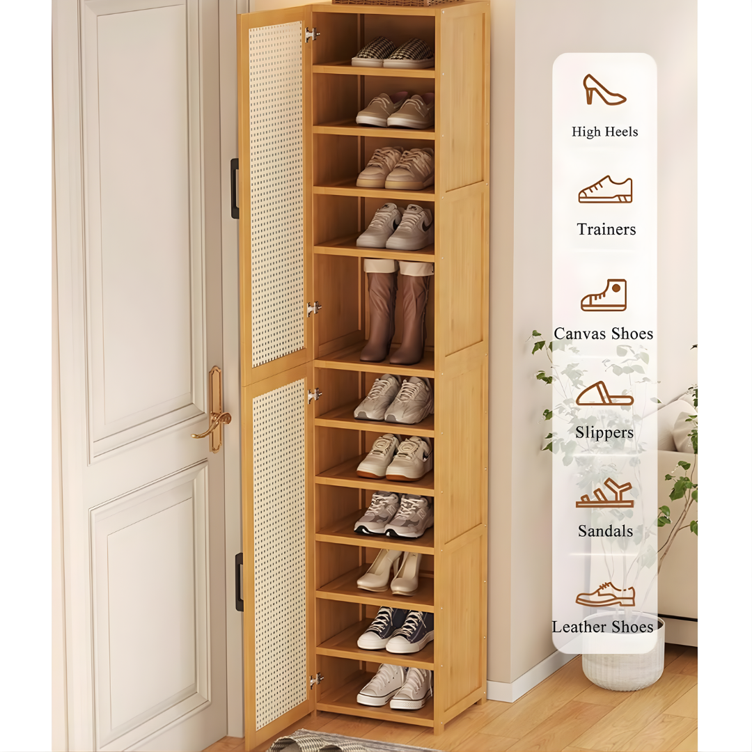 Bamboo Single Door Shoe Cabinet 9 Layer