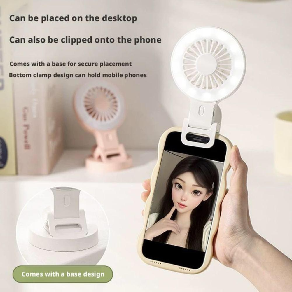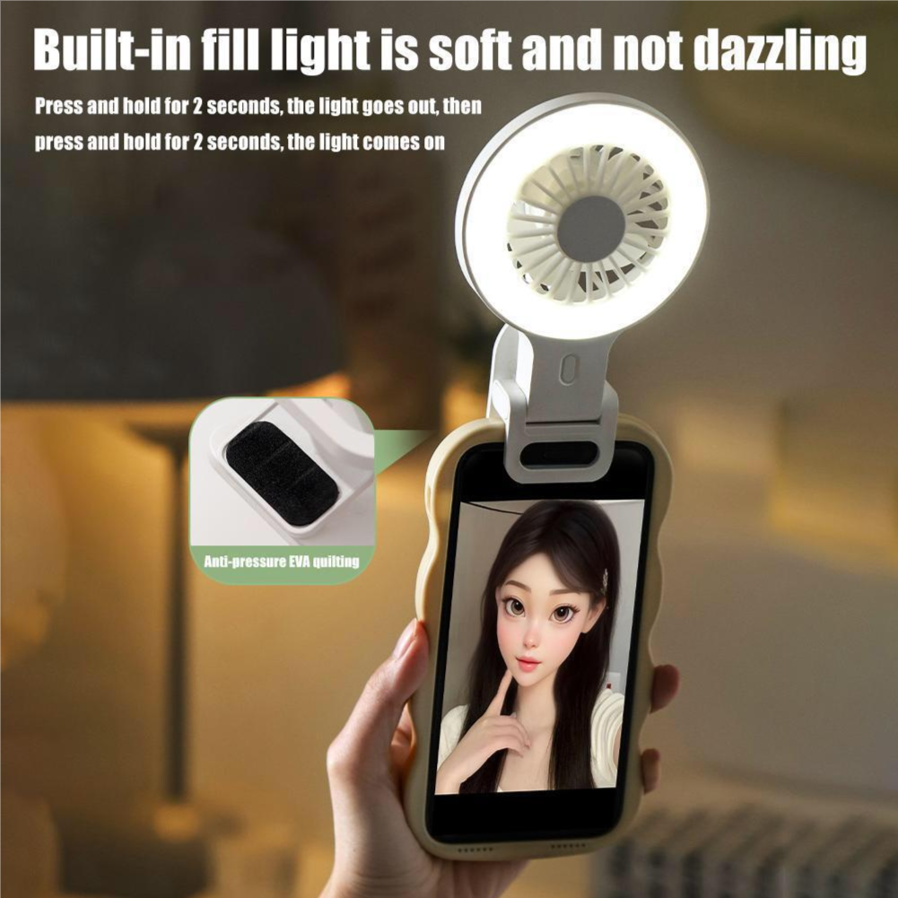 1. It is the fan that fills the light and blowsAdjustable clip | one-button switch |USB charging | fill light2....