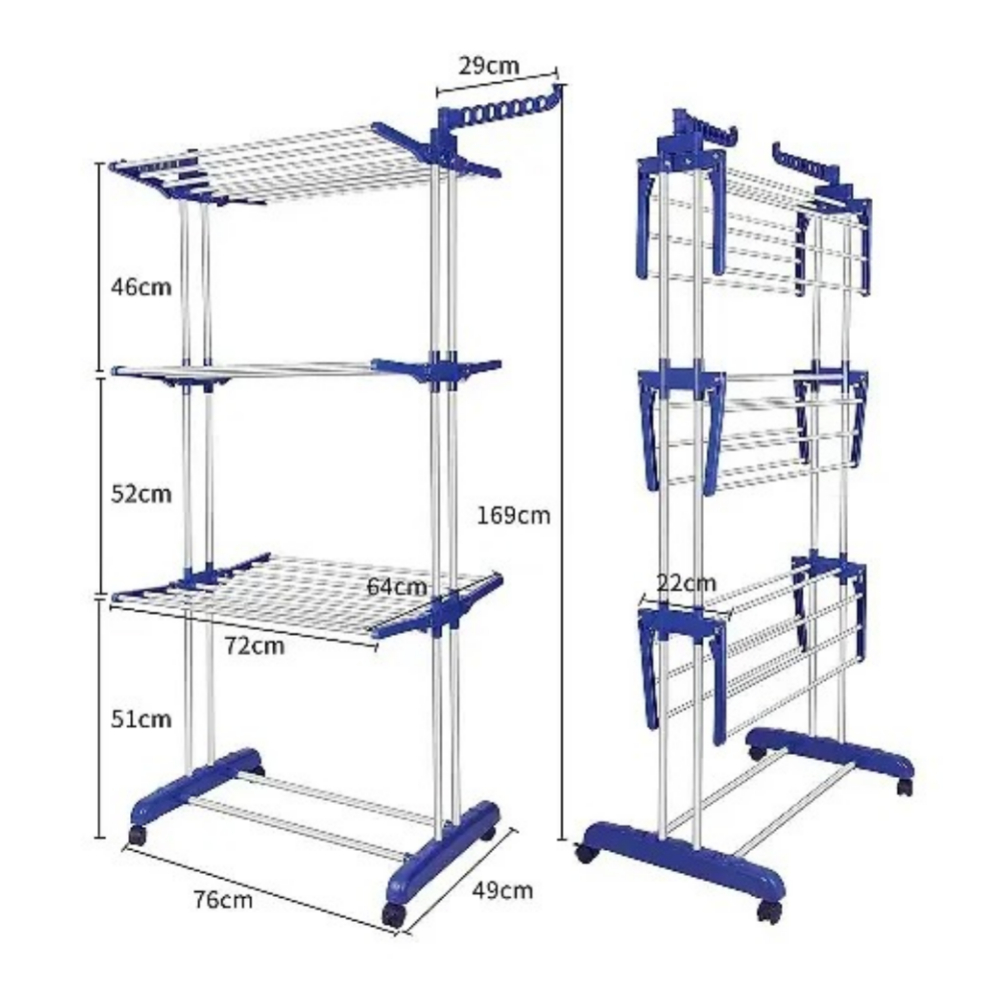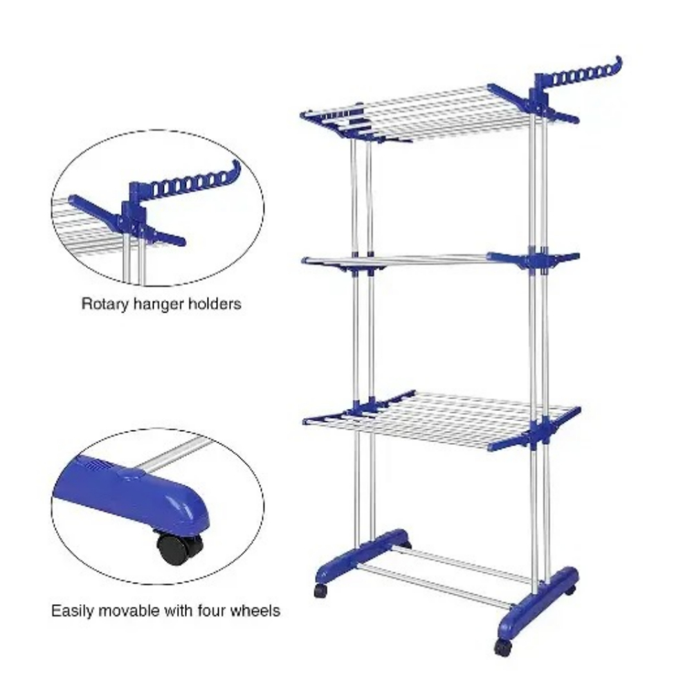 3 Layers Clothes Drying Rack Folding Clothes Rail Of Clothes Hanger, Adjustable Stainless Steel Hanger With Two Side Folding Wings...