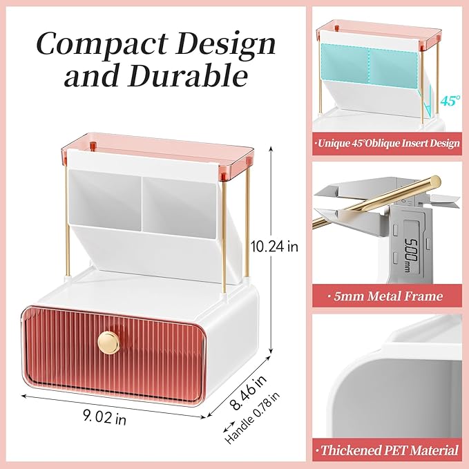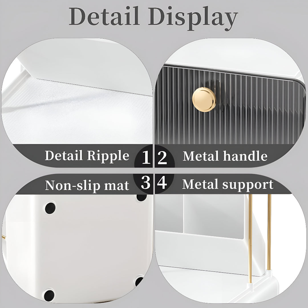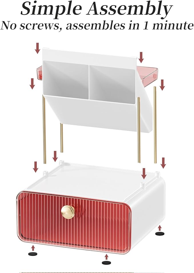 Quick Assembly, Durable and Easy to Clean - This makeup storage organizer requires no screws or tools, taking only a minute to set up. Made with a sturdy 5mm metal frame and thickened PET material, this bathroom countertop organizer is built to last, offering durability and easy maintenance