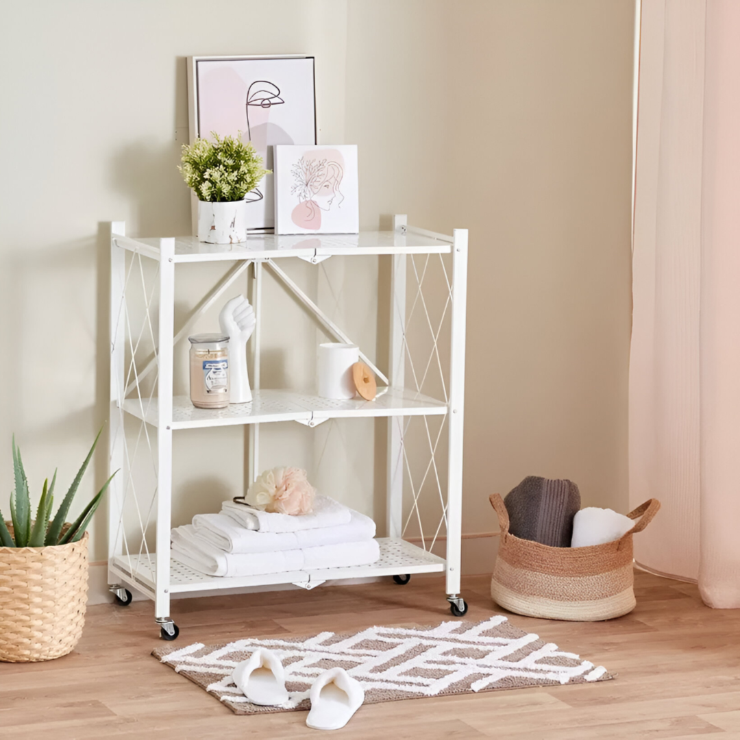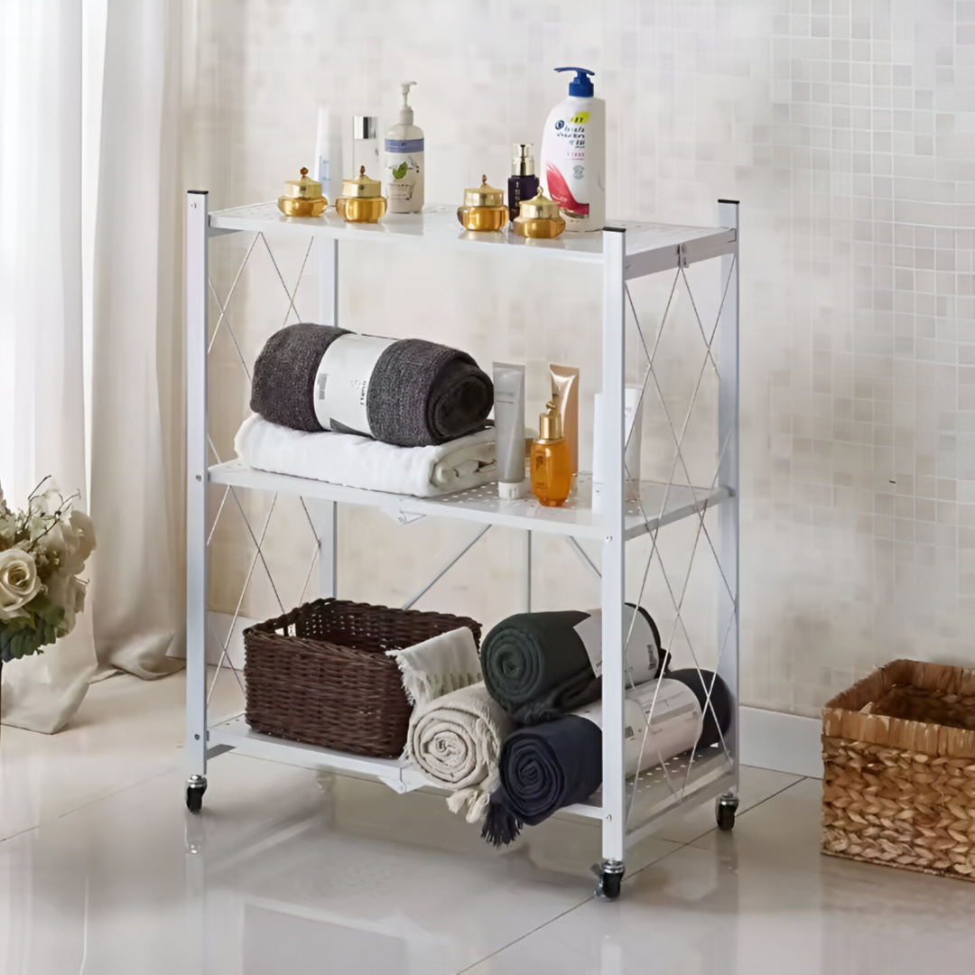 Foldable Kitchen Storage Rack 3 Layer White