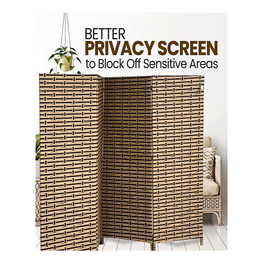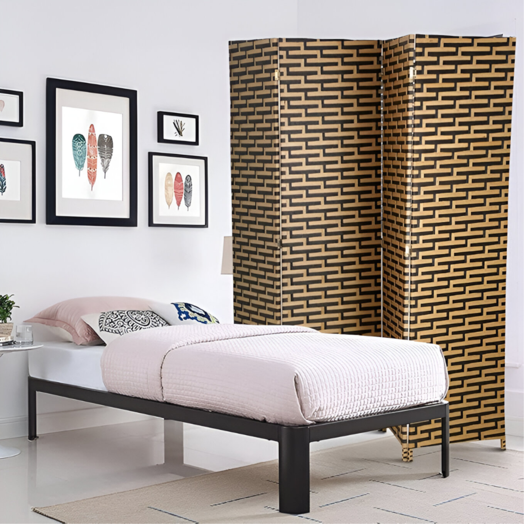 The height of this room divider is 180CM and 4 panels, which is high enough for you creating an enclosed personal space. But unlike ordinary walls which are completely enclosed, there is still space at the top of the folding screen for air circulation. This room divide can make you more relaxed when providing privacy at the same time.