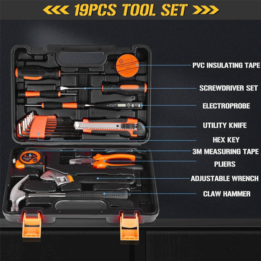 19 Piece Tool Set-Hand Tool Kit for Home with Plastic Storage Case, Tools & Accessories Perfect for Home Repair Maintenance...