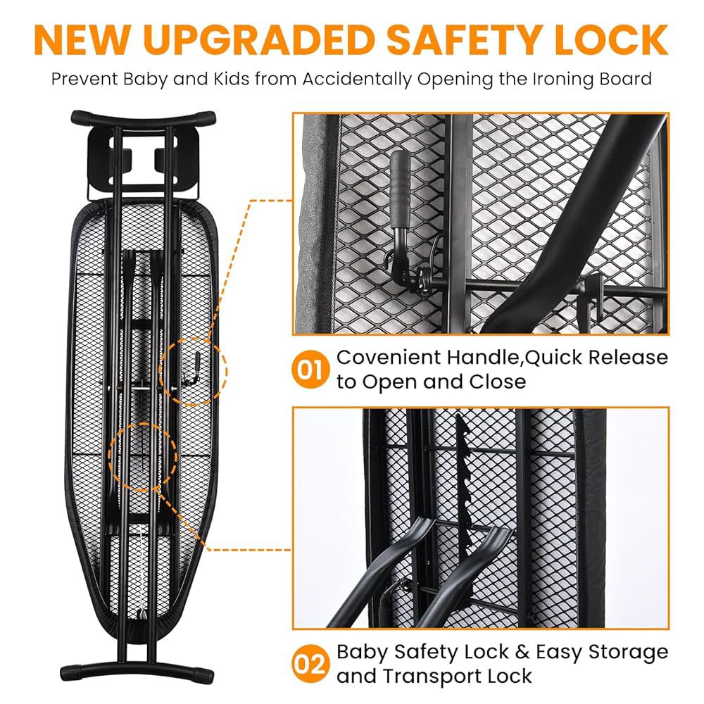 Retractable iron rest frame, new design Pipe Clamp, non-slip soft rubber feet, removable and washable cloth cover.