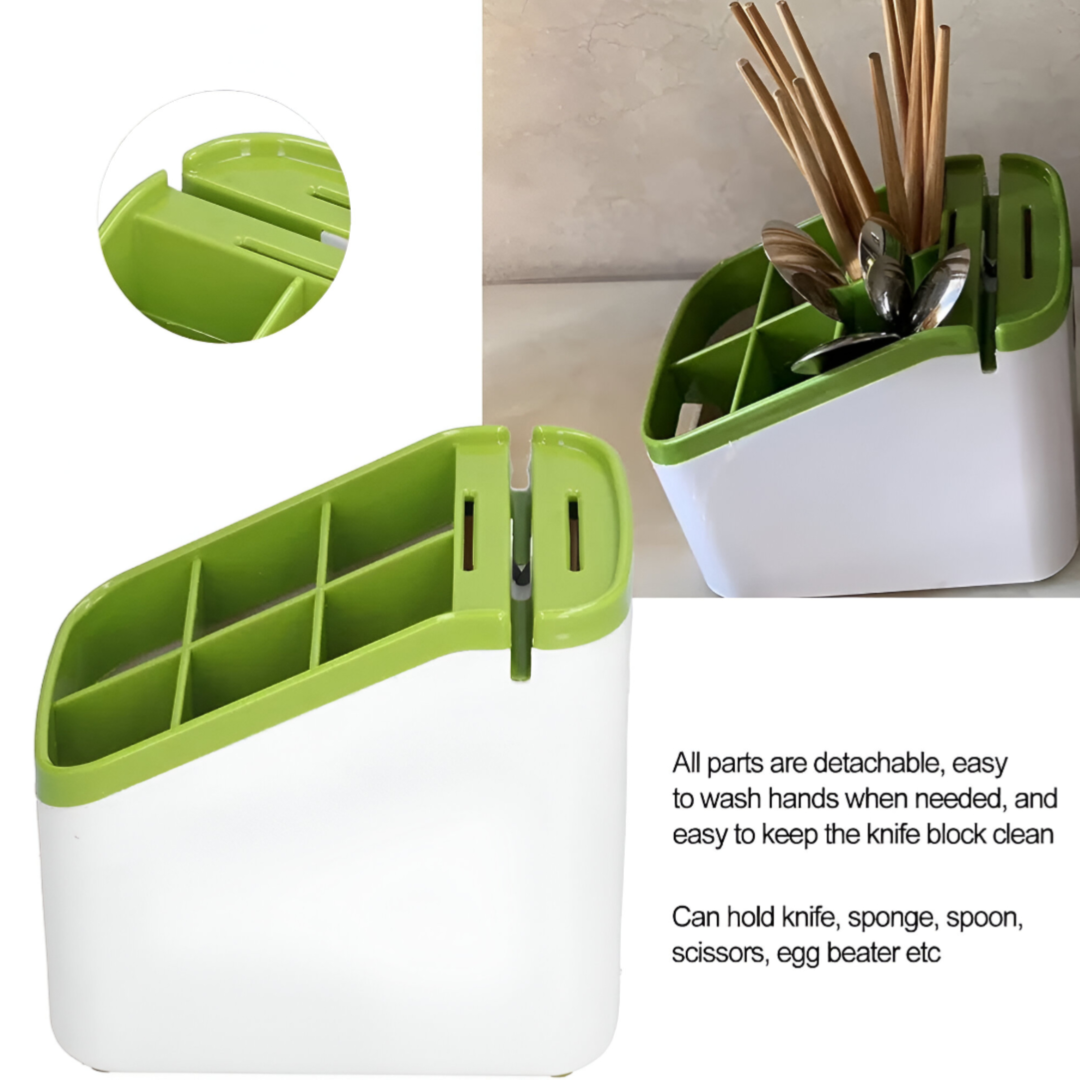 Large slots for draining knife & sharp objects 6 Compartments for organising your cutlery Easy to remove Organiser slot for...