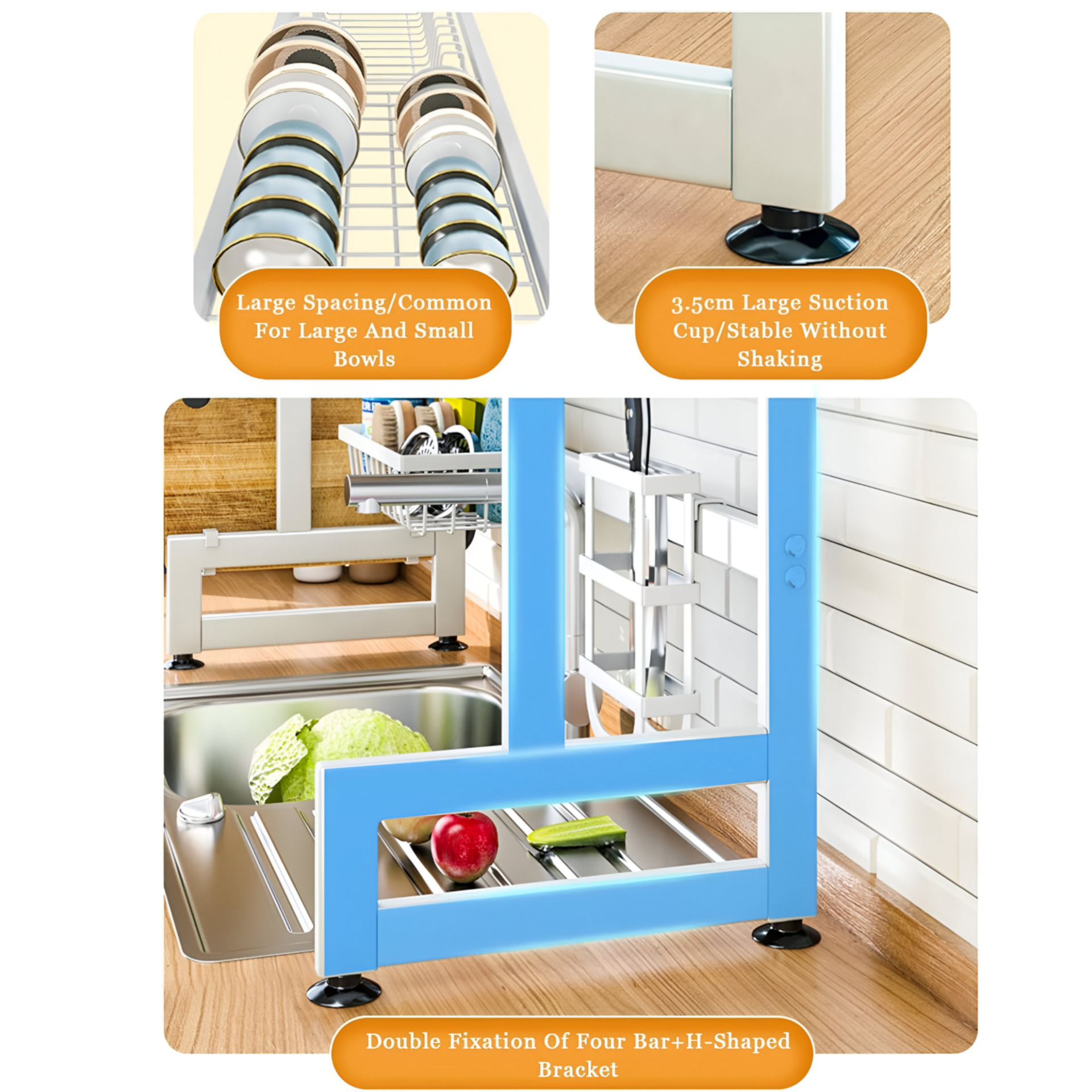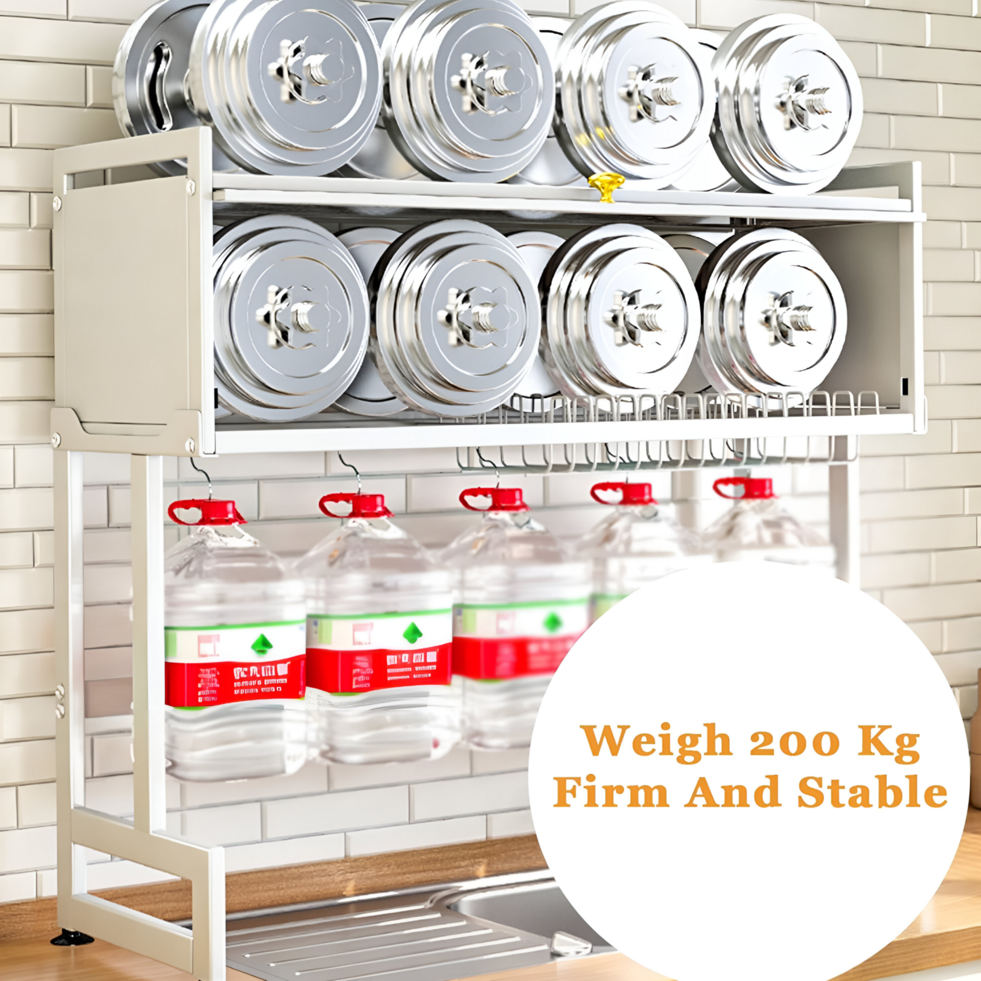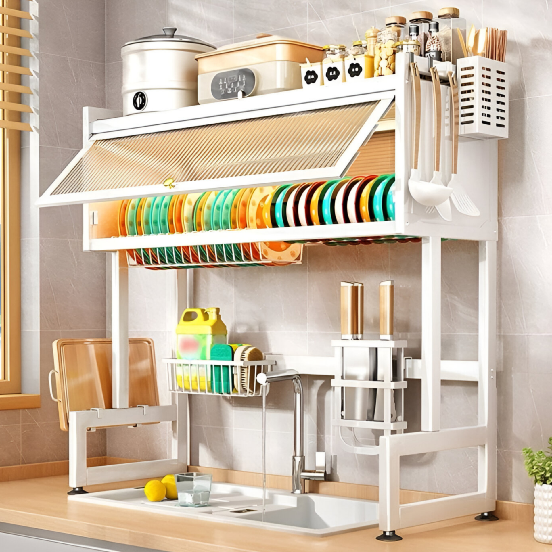 2 Tier Kitchen Dish Drying Over Sink Storage Rack With Door