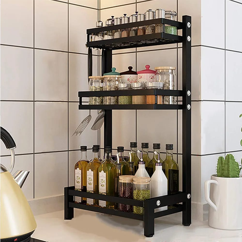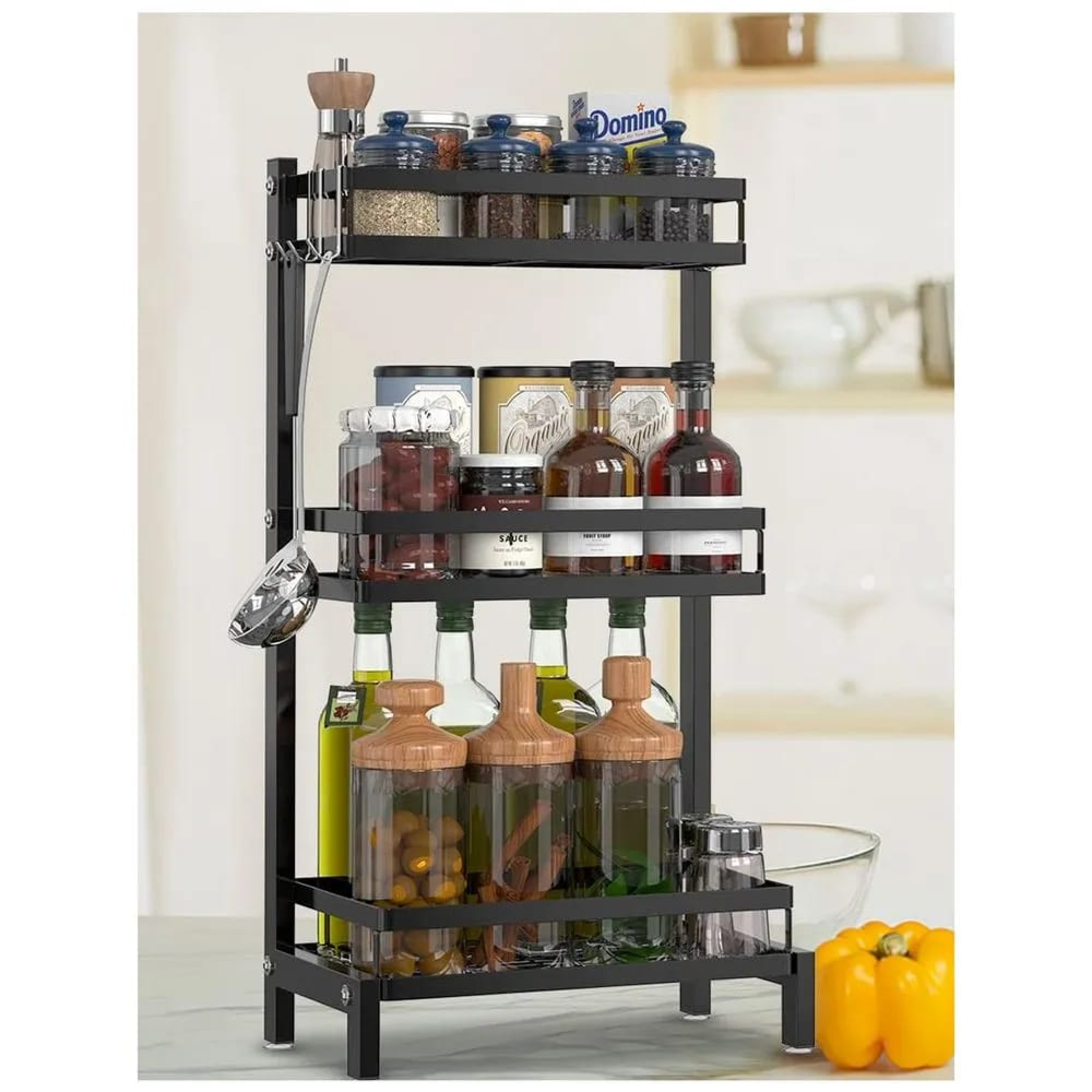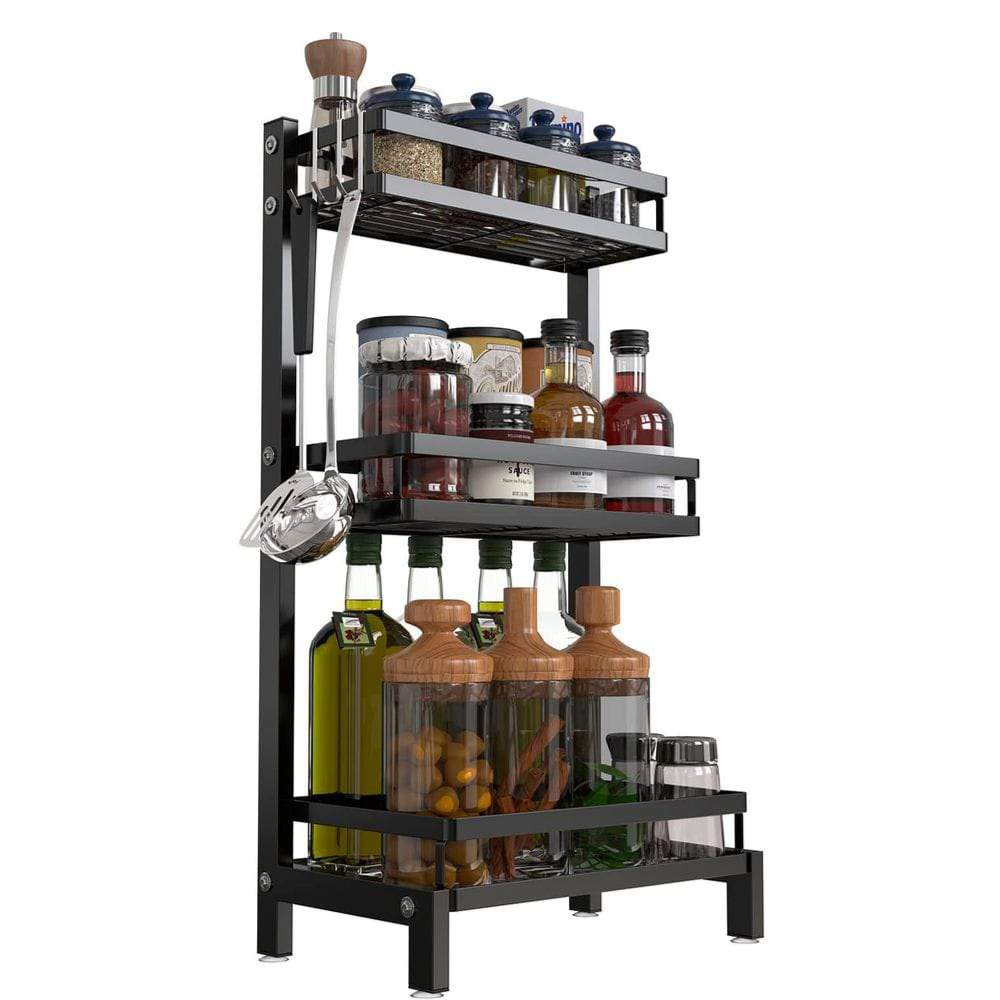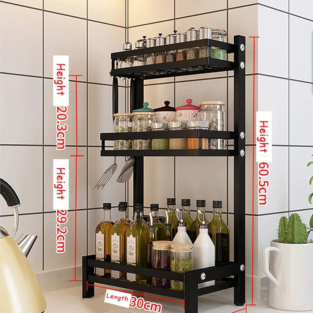 3-tier spice rack: Multifunctional storage with 3 levels, the height of the storage tray is designed to prevent objects from falling out.