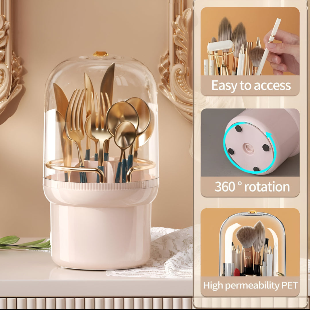 【360° Rotatable】Excellent rotatable design, easy to reach the brushes at the back, only need to gently rotate to achieve the purpose. In addition, it can be used to organize pencils, pens, cutlery and gadgets