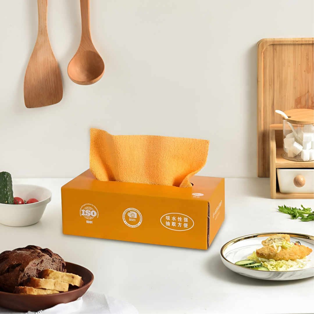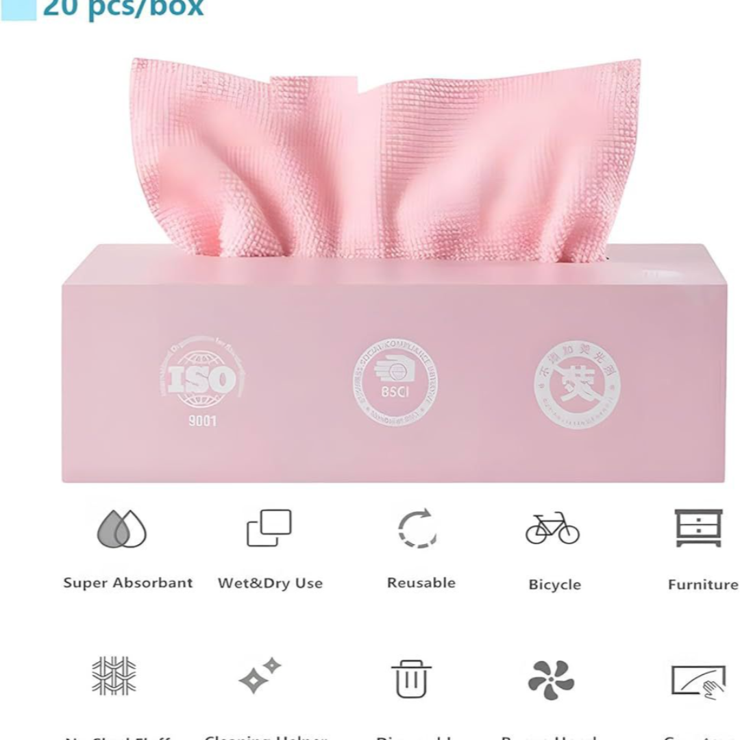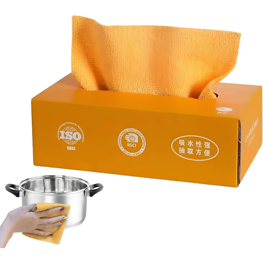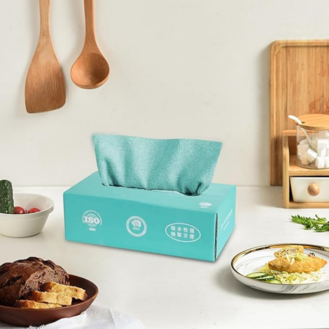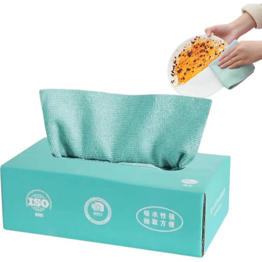 These microfiber cloths come in a practical dispensing box that allows for easy access and storage. The tissue-box style design keeps the cloths clean and organized when not in use, while making it simple to grab one when needed. The thickened microfiber material is engineered to trap dirt, grease, and moisture more effectively than standard cleaning cloths. Each cloth can be washed and reused multiple times, making them an economical and environmentally friendly alternative to disposable cleaning products.