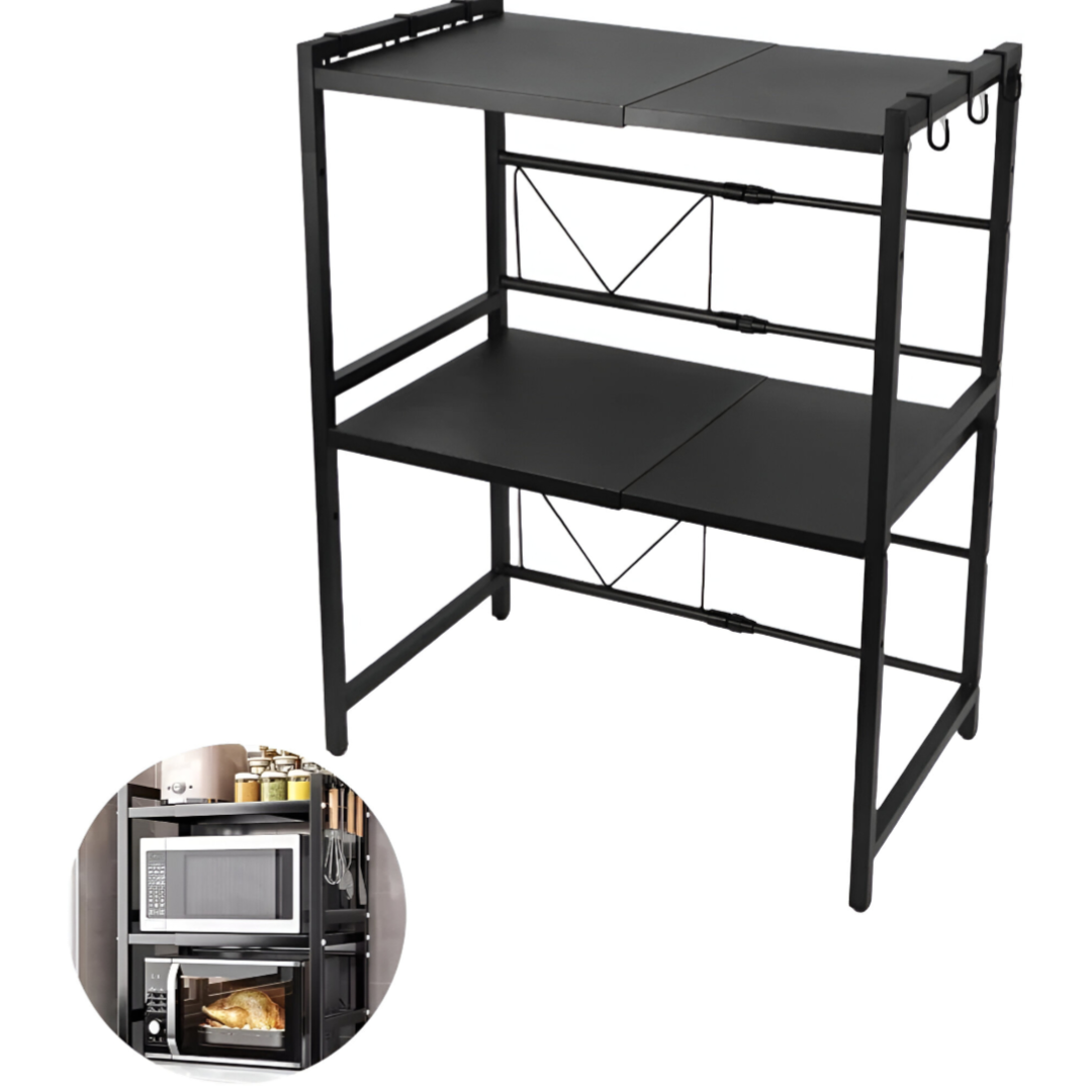 Adjustable Microwave Rack, Kitchen Counter Organizer 2-level Microwave Rack Toaster Rack, Crockery Storage Rackcolor :- BLACK & WHITE