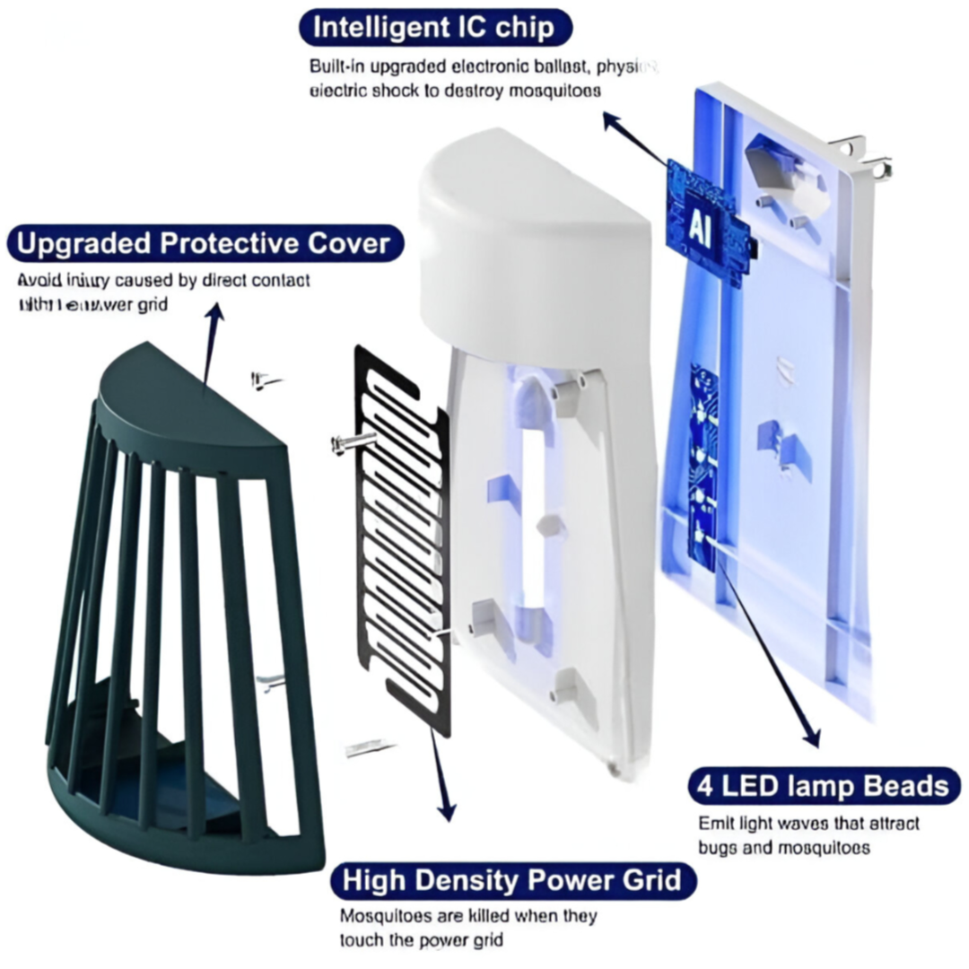 Energy-Efficient LED Lamp: Features a bright and energy-saving LED light that attracts insects, offering long-lasting and effective insect control with minimal power consumption.
