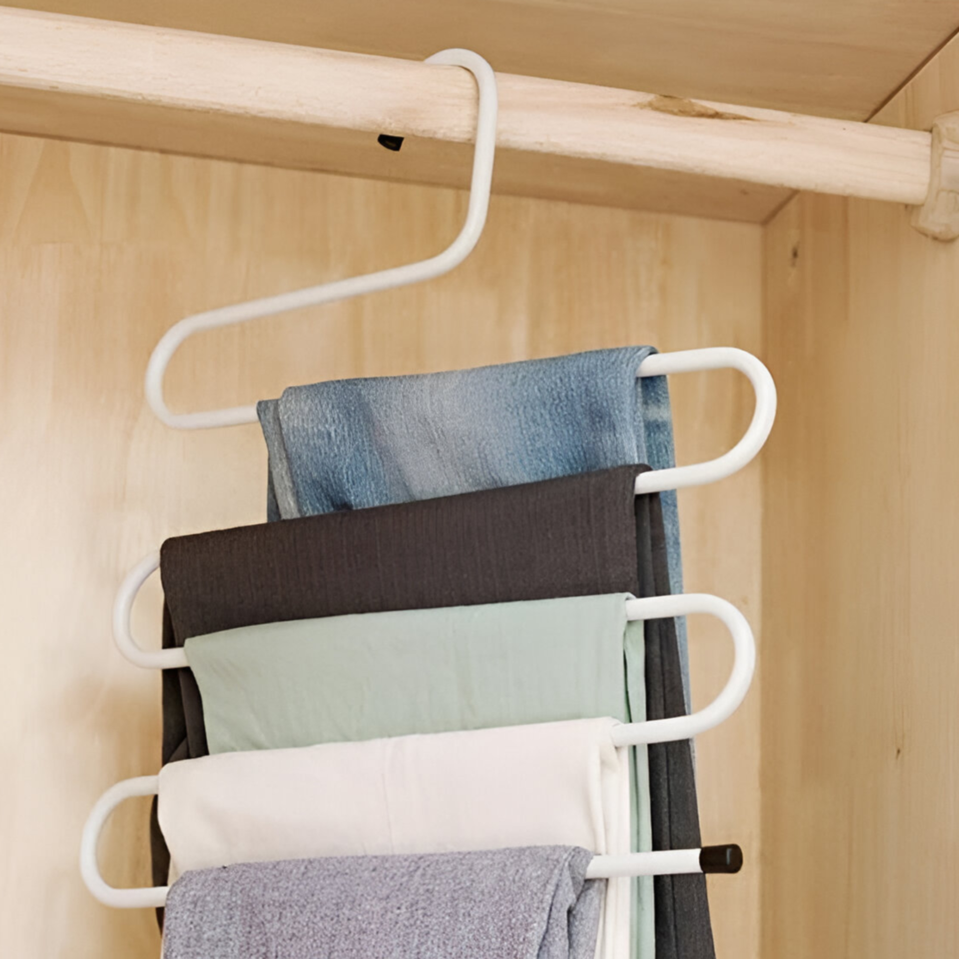 S-shaped 5-layer storage design, can hold 5 pants at the same time. Double your wardrobe space.Keep your trousers and clothes...