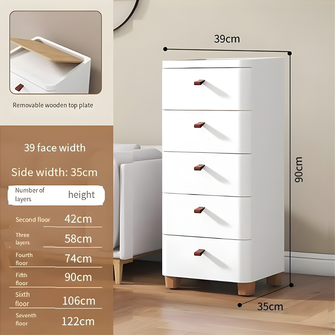 Add style and organization to your home with this sleek 5-layer plastic drawer cabinet. Featuring a smooth white matte finish...