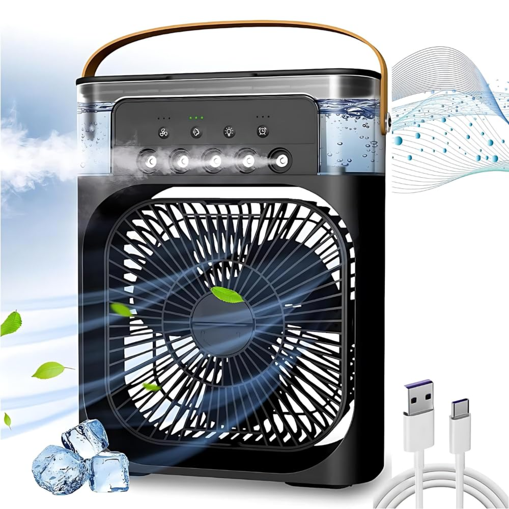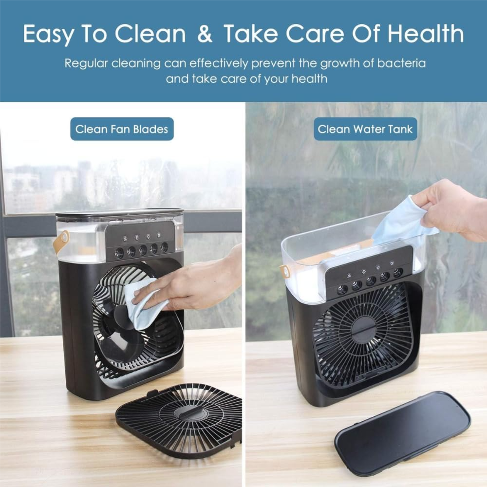 ❄【Adjustable Wind Speeds & Automatic Timing】With 3 wind speeds (high, medium, low) that can be adjusted manually, and the ability to adjust the blowing direction within a 60℃ range, you can tailor the airflow to meet your specific needs. Additionally, three automatic timing options (1/2/3 hours) allow you to select the most suitable setting for your leisure, sleep, or work time.❄【Moist, Fragrant Air】The portable air conditioner addresses the drawbacks of these two products by utilizing natural water evaporation to cool the air. It maintains moisture levels, operates with low power consumption, and delivers refreshing air.