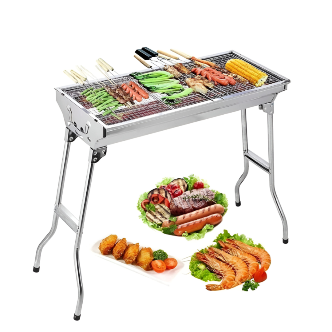 Portable Folding BBQ Grill Stainless Steel Surface