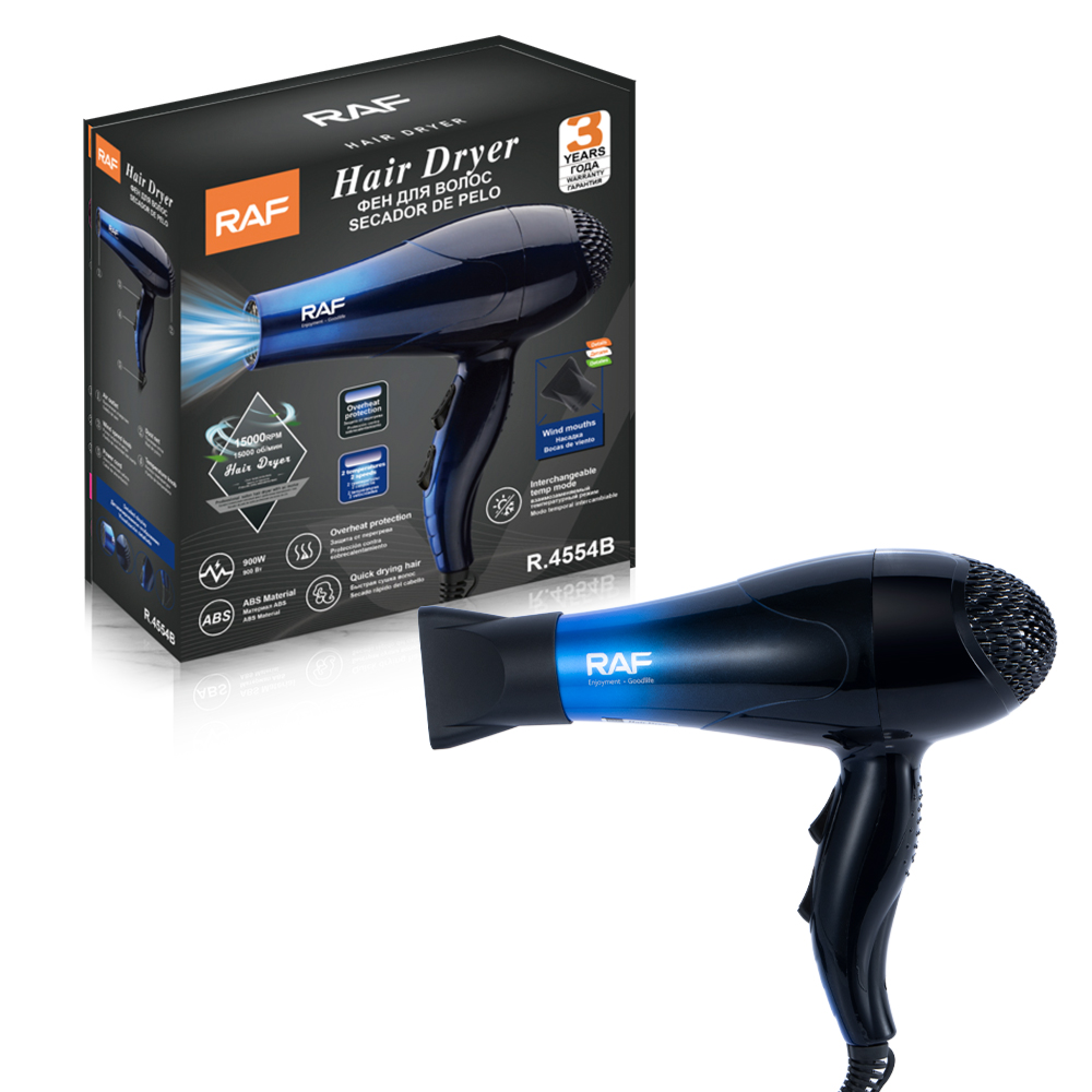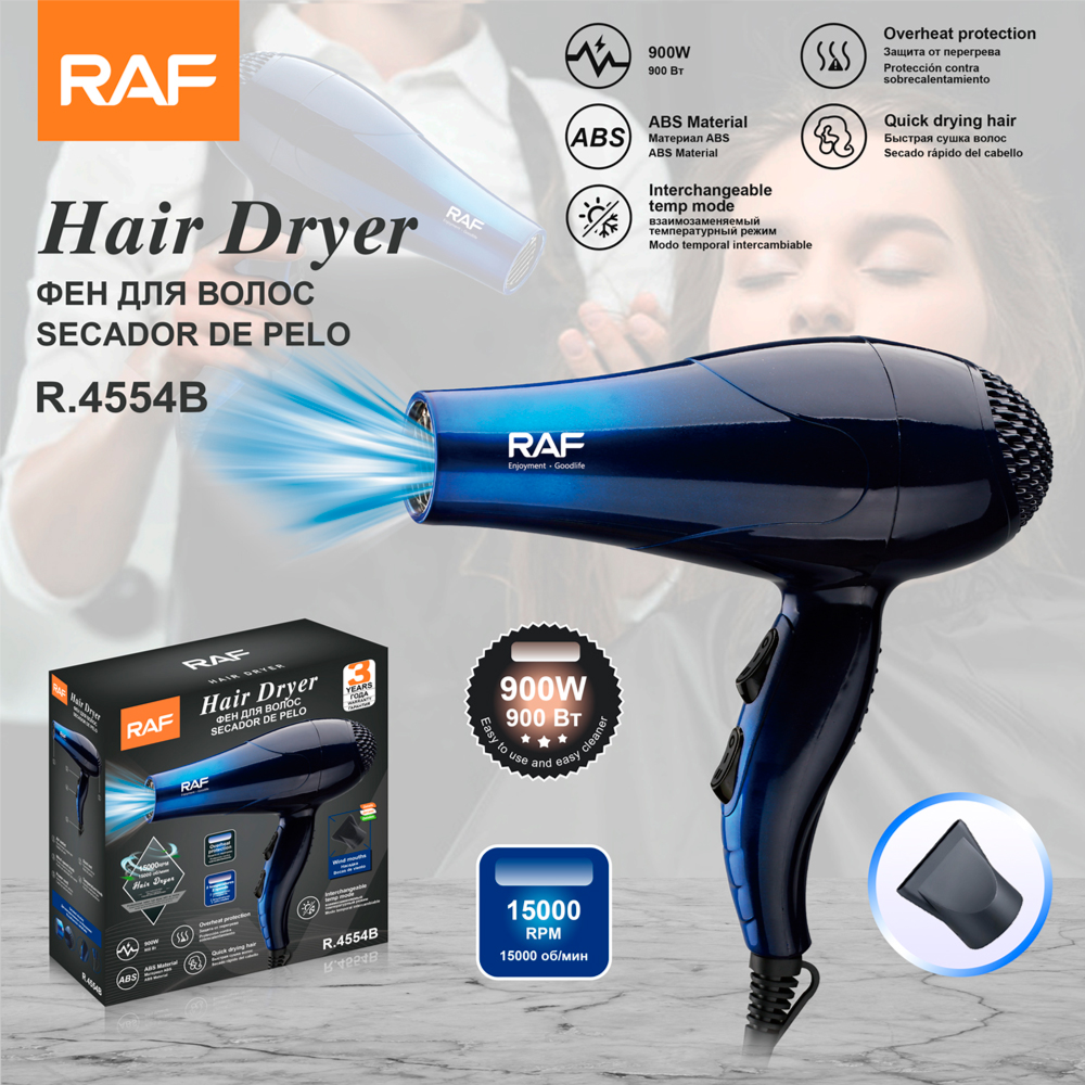 RAF R.4554 New Hair Dryer Hair Dryer 900w Compact Professional Hair Dryer ; power. 900 ; motor speed. >110,000 rpm...